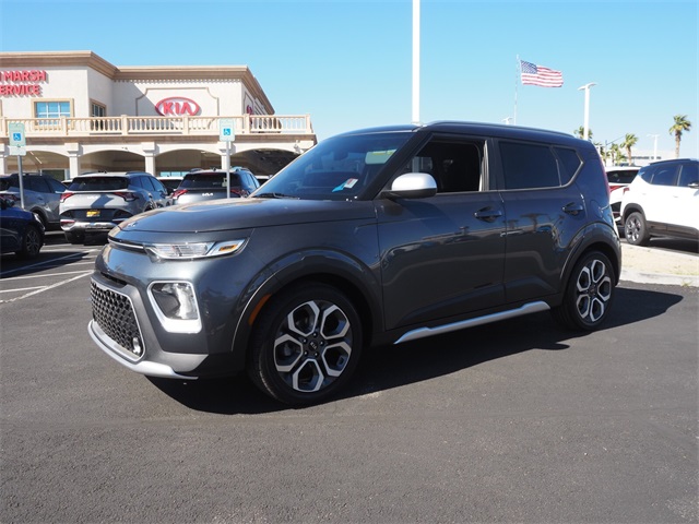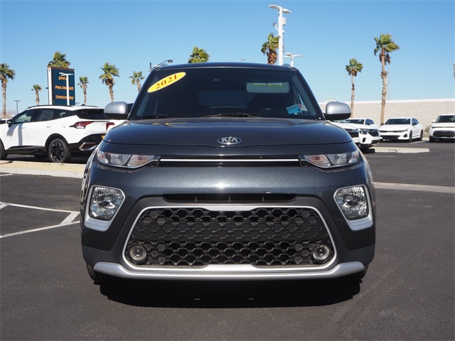 28/33 City/Highway MPGGravity Gray 2021 Kia Soul X-Line FWD IVT 2.0L I4 MPI DOHC 16V LEV3-ULEV125 147hpIf you don't drive here, you can't save here!Price may not include recon fee. Kia Certified Pre-Owned Certified, 4-Wheel Disc Brakes, 6 Speakers, ABS brakes, Air Conditioning, Alloy wheels, AM/FM radio, Apple CarPlay & Android Auto, Brake assist, Bumpers: body-color, Carpeted Floor Mats, Cloth Seat Trim, Delay-off headlights, Driver door bin, Driver vanity mirror, Dual front impact airbags, Dual front side impact airbags, Electronic Stability Control, Exterior Parking Camera Rear, Front anti-roll bar, Front Bucket Seats, Front Center Armrest, Front fog lights, Front reading lights, Front wheel independent suspension, Fully automatic headlights, Leather Shift Knob, Leather steering wheel, Low tire pressure warning, Occupant sensing airbag, Outside temperature display, Overhead airbag, Overhead console, Passenger door bin, Passenger vanity mirror, Power door mirrors, Power steering, Power windows, Radio: AM/FM/MP3 Audio System, Rear window defroster, Rear window wiper, Remote keyless entry, Speed control, Speed-sensing steering, Split folding rear seat, Steering wheel mounted audio controls, Tachometer, Telescoping steering wheel, Tilt steering wheel, Traction control, Trip computer, Variably intermittent wipers, and Wheels: 18" x 7.5 Alloy.