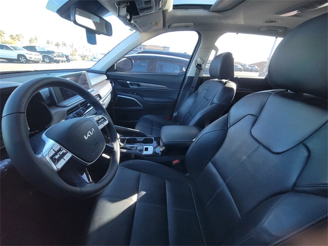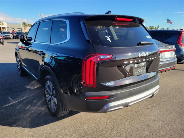 Recent Arrival!CARFAX One-Owner.Odometer is 5830 miles below market average!20/26 City/Highway MPGBlack Copper 2022 Kia Telluride EX FWD 8-Speed Automatic 3.8L V6 DOHCIf you don't drive here, you can't save here!Price may not include recon fee. EX Premium Package (20" x 7.5" Machined Alloy Wheels, 2nd Row Captain Chairs, LED Headlamps, and Satin Chrome Roof Rails), Kia Certified Pre-Owned Certified, 3.648 Axle Ratio, 3rd row seats: split-bench, 4-Wheel Disc Brakes, 6 Speakers, ABS brakes, Air Conditioning, Alloy wheels, AM/FM radio: SiriusXM, Apple CarPlay & Android Auto, Auto-dimming Rear-View mirror, Automatic temperature control, Brake assist, Bumpers: body-color, Carpeted Floor Mats, Compass, Delay-off headlights, Driver door bin, Driver vanity mirror, Dual front impact airbags, Dual front side impact airbags, Electronic Stability Control, Emergency communication system: 911 Connect, Four wheel independent suspension, Front anti-roll bar, Front Bucket Seats, Front Center Armrest, Front dual zone A/C, Front reading lights, Fully automatic headlights, Heated & Ventilated Front Bucket Seats, Heated door mirrors, Heated front seats, Illuminated entry, Knee airbag, Leather Seat Trim, Leather Shift Knob, Leather steering wheel, Low tire pressure warning, Navigation System, Occupant sensing airbag, Outside temperature display, Overhead airbag, Overhead console, Panic alarm, Passenger door bin, Passenger vanity mirror, Power door mirrors, Power driver seat, Power Liftgate, Power moonroof, Power passenger seat, Power steering, Power windows, Radio data system, Radio: AM/FM Display Audio System, Rear air conditioning, Rear anti-roll bar, Rear audio controls, Rear reading lights, Rear seat center armrest, Rear window defroster, Rear window wiper, Reclining 3rd row seat, Remote keyless entry, Roof rack: rails only, Security system, Speed control, Speed-sensing steering, Split folding rear seat, Spoiler, Steering wheel mounted audio controls, Tachometer, Telescoping steering wheel, Tilt steering wheel, Traction control, Trip computer, Turn signal indicator mirrors, Variably intermittent wipers, Ventilated front seats, and Wheels: 18" x 7.5" Machined Alloy.
