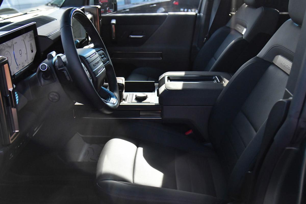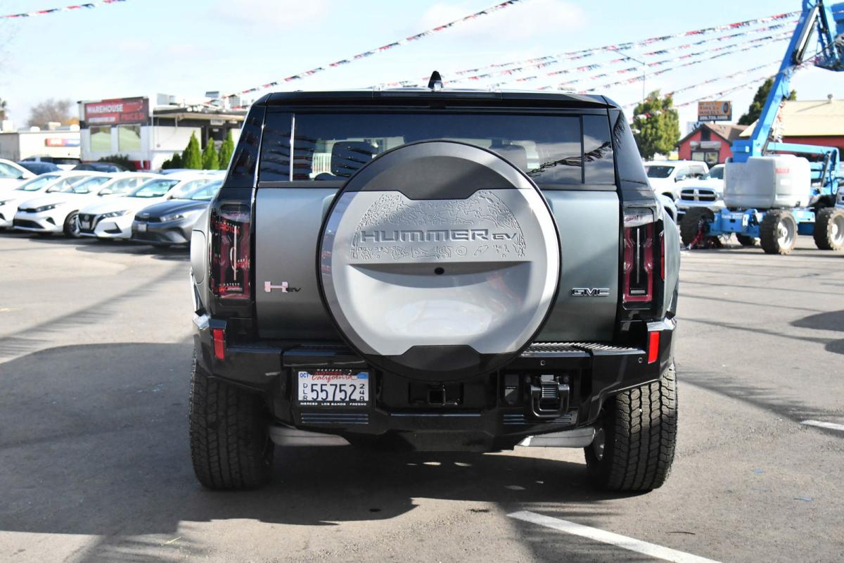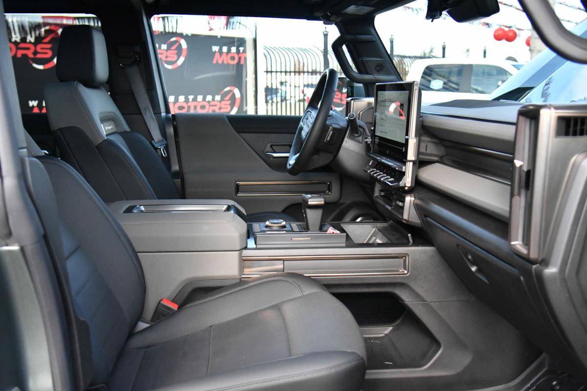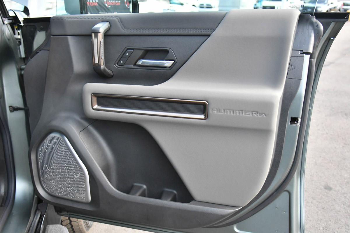 WHEELS, 22 X 9.5 PREMIUM FINISH PAINTED ALUMINUM with selective machining (STD), TRANSMISSION, NONE (ELECTRIC DRIVE UNIT) (STD), TRAILER TIRE PRESSURE MONITORING SYSTEM, TIRES, LT305/55R22 GOODYEAR WRANGLER TERRITORY AT (STD), TIRE, SPARE, LT305/55R22 35 (STD), SEATS, FRONT BUCKET WITH CENTER CONSOLE, PREMIUM (STD), PREFERRED EQUIPMENT GROUP includes standard equipment, MOONSHOT GREEN MATTE, LUNAR SHADOW (JET BLACK/TAUPE), PREMIUM LEATHER-ALTERNATIVE SEATING SURFACES, LPO, SPARE TIRE COVER IN BARB WIRE, HARD SHELL WITH SOFT WRAP (dealer-installed). This GMC HUMMER EV SUV has a strong Electric engine powering this Automatic transmission.*This GMC HUMMER EV SUV 3X Has Everything You Want *LPO, REAR D-RING RECOVERY HOOK IN BLACK, ARTICULATING D-RING, FRAME MOUNTED (dealer-installed), INFINITY ROOF, WITH REMOVABLE TRANSPARENT SKY PANELS (includes 4 storage bags Front I-Bar is removable), GMC HUMMER EV EDITION 1 Includes (CC3) Infinity Roof removable transparent Sky Panels, (HAS) Lunar Shadow (Jet Black/Taupe), (G7W) Moonshot Green Matte and (SDA) Rear D-ring Recovery Hook in Black, LPO, ENGINE, NONE (ELECTRIC MOTORS) (STD), DUAL LEVEL CHARGE CORD, DUAL-MODE, PORTABLE 120-volt (1.4 kW) and 240-volt (7.7 kW) capability, swappable NEMA 5-15 and NEMA 14-50 plugs with SAE J1772 vehicle connection, AUDIO SYSTEM, 13.4 DIAGONAL PREMIUM GMC INFOTAINMENT SYSTEM WITH GOOGLE BUILT IN APPS SUCH AS NAVIGATION AND VOICE ASSISTANCE includes color touch-screen, multi-touch display, AM/FM stereo, Bluetooth streaming audio for music and most phones; featuring wireless Android Auto and Apple CarPlay capability for compatible phones (STD), Wireless Phone Projection, for Apple CarPlay and Android Auto, Wireless Phone Charging (Not compatible with all phones. Compliant batteries include QI and PMA technologies. Reference Mobile devices manual to confirm what type of battery it uses.), Wipers, 3 front intermittent, Rainsense, Windows, remote Express-Down, front and rear door windows, Window, Power Rear Drop Glass, Wi-Fi Hotspot capable (Terms and limitations apply. See onstar.com or dealer for details.), Wheel, Spare 22 x 9.5 Premium Finish Painted Aluminum with selective machining, Watts to Freedom, launch experience, USB ports, rear, dual, charge-only, USB Ports, 2 (first row) located on console, Universal Home Remote, Ultium Rear Drive Unit 2-motor, Integrated Inverter, Torque Vectoring Drive System, Ultium Front Drive Unit, 1-motor, Integrated Inverter, Park System, Ultium Drive System Performance Torque Vectoring e4WD (Electronic 4WD), 3 motors (1 front, 2 rear).