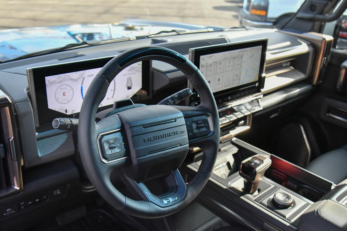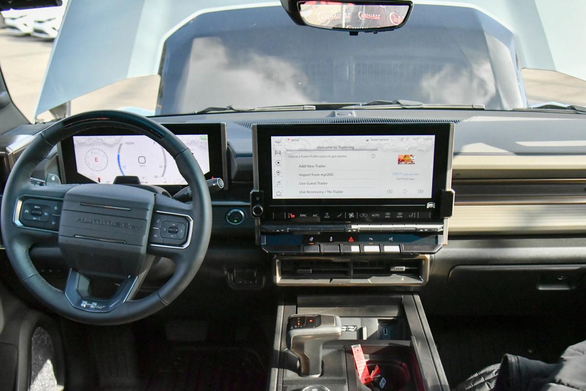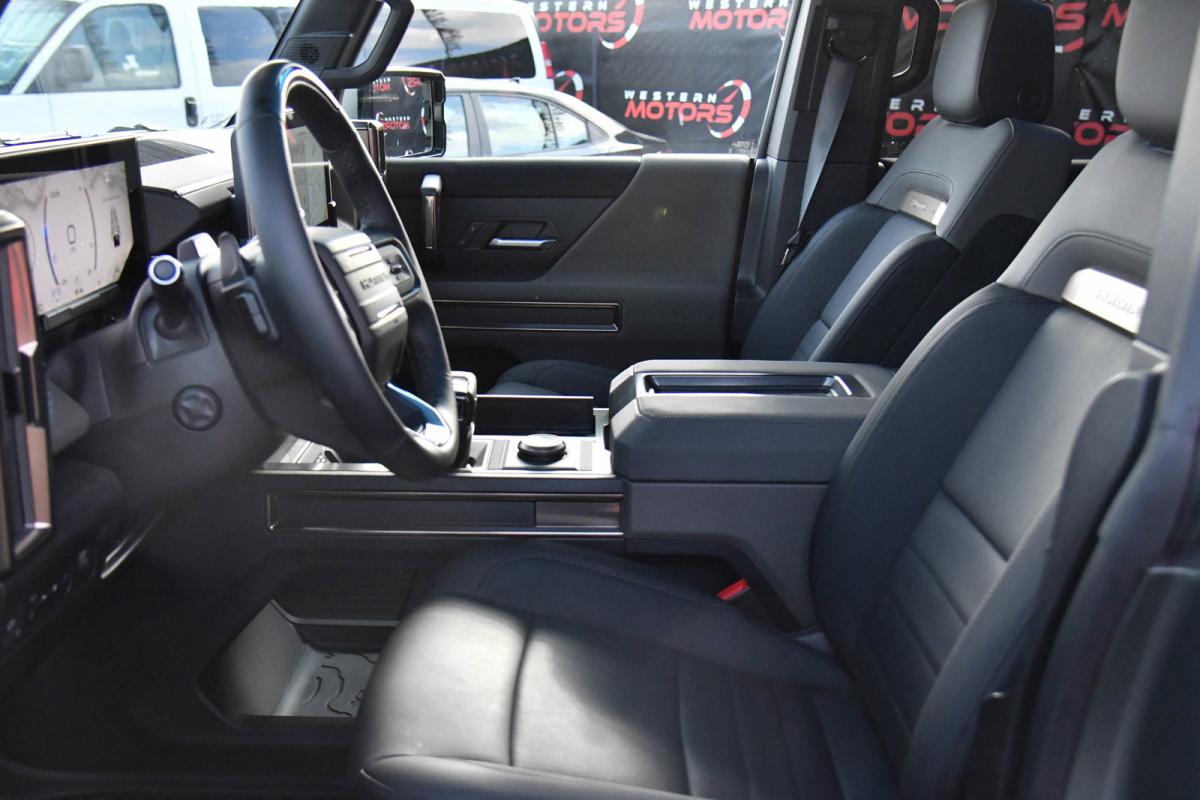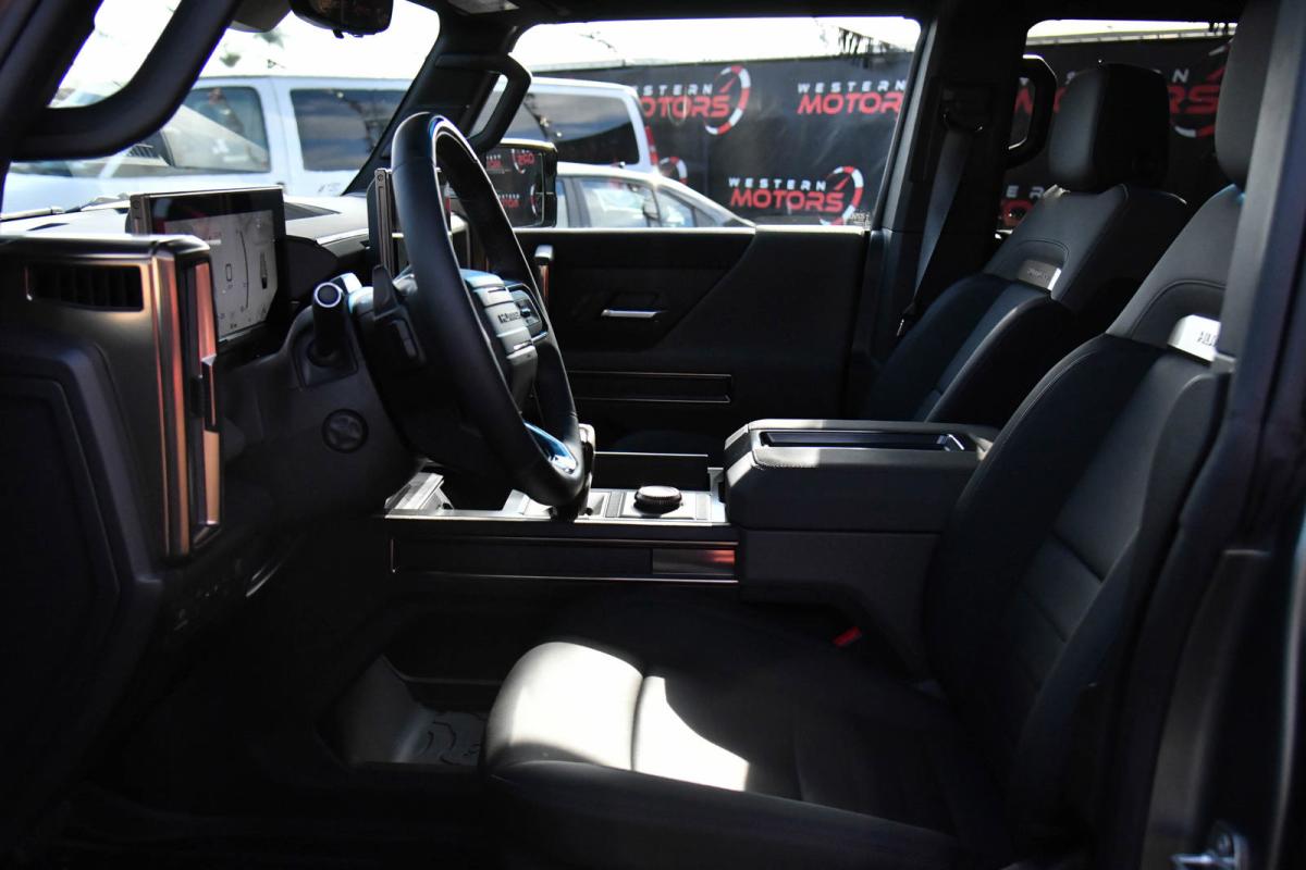 WHEELS, 22 X 9.5 PREMIUM FINISH PAINTED ALUMINUM with selective machining (STD), TRANSMISSION, NONE (ELECTRIC DRIVE UNIT) (STD), TRAILER TIRE PRESSURE MONITORING SYSTEM, TIRES, LT305/55R22 GOODYEAR WRANGLER TERRITORY AT (STD), TIRE, SPARE, LT305/55R22 35 (STD), SEATS, FRONT BUCKET WITH CENTER CONSOLE, PREMIUM (STD), PREFERRED EQUIPMENT GROUP includes standard equipment, MOONSHOT GREEN MATTE, LUNAR SHADOW (JET BLACK/TAUPE), PREMIUM LEATHER-ALTERNATIVE SEATING SURFACES, LPO, SPARE TIRE COVER IN BARB WIRE, HARD SHELL WITH SOFT WRAP (dealer-installed). This GMC HUMMER EV SUV has a strong Electric engine powering this Automatic transmission.*This GMC HUMMER EV SUV 3X Has Everything You Want *LPO, REAR D-RING RECOVERY HOOK IN BLACK, ARTICULATING D-RING, FRAME MOUNTED (dealer-installed), INFINITY ROOF, WITH REMOVABLE TRANSPARENT SKY PANELS (includes 4 storage bags Front I-Bar is removable), GMC HUMMER EV EDITION 1 Includes (CC3) Infinity Roof removable transparent Sky Panels, (HAS) Lunar Shadow (Jet Black/Taupe), (G7W) Moonshot Green Matte and (SDA) Rear D-ring Recovery Hook in Black, LPO, ENGINE, NONE (ELECTRIC MOTORS) (STD), DUAL LEVEL CHARGE CORD, DUAL-MODE, PORTABLE 120-volt (1.4 kW) and 240-volt (7.7 kW) capability, swappable NEMA 5-15 and NEMA 14-50 plugs with SAE J1772 vehicle connection, AUDIO SYSTEM, 13.4 DIAGONAL PREMIUM GMC INFOTAINMENT SYSTEM WITH GOOGLE BUILT IN APPS SUCH AS NAVIGATION AND VOICE ASSISTANCE includes color touch-screen, multi-touch display, AM/FM stereo, Bluetooth streaming audio for music and most phones; featuring wireless Android Auto and Apple CarPlay capability for compatible phones (STD), Wireless Phone Projection, for Apple CarPlay and Android Auto, Wireless Phone Charging (Not compatible with all phones. Compliant batteries include QI and PMA technologies. Reference Mobile devices manual to confirm what type of battery it uses.), Wipers, 3 front intermittent, Rainsense, Windows, remote Express-Down, front and rear door windows, Window, Power Rear Drop Glass, Wi-Fi Hotspot capable (Terms and limitations apply. See onstar.com or dealer for details.), Wheel, Spare 22 x 9.5 Premium Finish Painted Aluminum with selective machining, Watts to Freedom, launch experience, USB ports, rear, dual, charge-only, USB Ports, 2 (first row) located on console, Universal Home Remote, Ultium Rear Drive Unit 2-motor, Integrated Inverter, Torque Vectoring Drive System, Ultium Front Drive Unit, 1-motor, Integrated Inverter, Park System, Ultium Drive System Performance Torque Vectoring e4WD (Electronic 4WD), 3 motors (1 front, 2 rear).