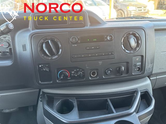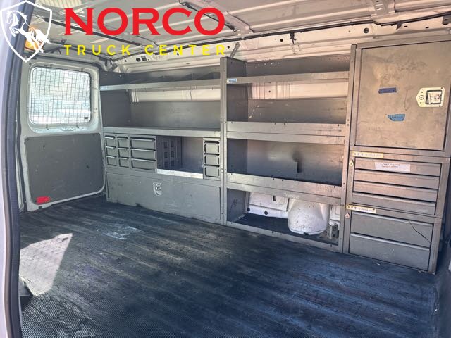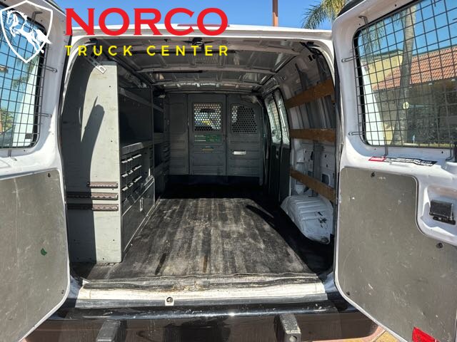 Introducing the 2013 Ford E-250 Cargo, a reliable and sturdy work van ideal for businesses that require a spacious and durable vehicle. Equipped with a powerful Triton 4.6L Flex Fuel V8 engine that provides 225 horsepower and 286 ft. lbs of torque, this van can handle heavy loads with ease. The Ford E-250 Cargo comes with a variety of factory default features that make it a practical and functional work vehicle. The interior is spacious and comfortable, with cloth bucket seats and air conditioning to keep the driver and passengers comfortable during long trips. The van also comes with a tilt steering wheel, power windows, and power door locks for convenience. The cargo area is designed to accommodate large and bulky items, with a total cargo space of 237.8 cubic feet. The rear doors are split 60/40 and swing outwards to allow for easy loading and unloading. The van also includes a rear step bumper, cargo tie-down hooks, and a full-size spare tire for added convenience. Other features include a four-speaker AM/FM stereo system with an auxiliary input jack for external devices, a tachometer, and a trip computer. The van also comes with advanced safety features such as a tire pressure monitoring system, four-wheel anti-lock brakes, and stability control. Overall, the 2013 Ford E-250 Cargo is a practical and reliable work van that offers ample cargo space, powerful performance, and a range of functional features. -- INSTALLED FEATURES: Front air conditioning, Front air conditioning zones: single, Front airbags: dual, Antenna type: mast, Auxiliary audio input: jack, Radio: AM/FM, Total speakers: 2, ABS: 4-wheel, Electronic brakeforce distribution, Front brake diameter: 13.0, Front brake type: ventilated disc, Rear brake diameter: 12.9, Rear brake type: ventilated disc, Armrests: front center, Floor material: rubber/vinyl, Ashtray, Cargo area light, Center console: front console with storage, Cupholders: front, Power outlet(s): 12V front, Power steering, Steering wheel: tilt, Storage: door pockets, Axle ratio: 3.73, Alternator: 120 amps, Battery: maintenance-free, Door handle color: black, Front bumper color: black, Mirror color: black, Rear bumper color: black, Rear trunk/liftgate: barn, Side door type: passenger-side hinged swing-out, Clock, Gauge: tachometer, Warnings and reminders: low fuel level, Side mirror adjustments: manual / manual telescoping, OEM roof height: undefined, Front seatbelts: 3-point, Seatbelt pretensioners: front, Driver seat manual adjustments: height, Front seat type: bucket, Passenger seat manual adjustments, Upholstery: vinyl, Roll stability control, Stability control, Traction control, Front shock type: gas, Front spring type: coil, Front stabilizer bar, Front suspension classification: independent, Front suspension type: twin I-beam, Rear shock type: gas, Rear spring type: leaf, Rear suspension classification: solid live axle, Rear suspension type: multi-leaf, Spare tire mount location: underbody, Spare tire size: full-size matching, Spare wheel type: steel, Tire Pressure Monitoring System, Tire type: all season, Wheel covers: full, Wheels: steel, Auxiliary transmission fluid cooler, Front wipers: intermittent, Tinted glass