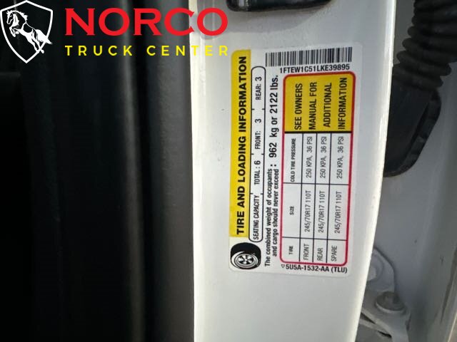 -- INSTALLED FEATURES: Air filtration, Front air conditioning, Front air conditioning zones: single, Airbag deactivation: occupant sensing passenger, Front airbags: dual, Side airbags: front, Side curtain airbags: front / rear, Antenna type: mast, Auxiliary audio input: Bluetooth / USB / iPod/iPhone, Radio: AM/FM / touch screen display / voice operated, Radio data system, Total speakers: 6, Watts: 80, ABS: 4-wheel, Braking assist, Cornering brake control, Electronic brakeforce distribution, Electronic parking brake: auto off, Emergency braking preparation, Front brake diameter: 13.8, Front brake type: ventilated disc, Front brake width: 1.34, Power brakes, Rear brake diameter: 13.7, Rear brake type: ventilated disc, Rear brake width: .98, Armrests: front center, Door sill trim: scuff plate, Floor mat material: carpet, Floor material: carpet, Floor mats: front / rear, Steering wheel trim: urethane, Assist handle: front / rear, Capless fuel filler system, Cruise control, Cupholders: front, Keypad entry, Multi-function remote: keyless entry / panic alarm, One-touch windows: 2, Power outlet(s): 12V front / 12V rear, Power steering: variable/speed-proportional, Power windows: lockout button, Reading lights: front / rear, Rearview mirror: manual day/night, Steering wheel: tilt and telescopic, Steering wheel mounted controls: audio / cruise control / multi-function / phone / voice control, Storage: accessory hook / door pockets / front seatback / in seat cushion / under rear seats, Vanity mirrors: dual, Axle ratio: 3.55, Drive mode selector, Alternator: 200 amps, Auto start/stop, Battery: maintenance-free, Battery rating: 760 CCA, Battery saver, Active grille shutters, Door handle color: black, Front bumper color: chrome, Grille color: black surround / chrome, Mirror color: black, Pickup bed light, Rear bumper color: chrome, Tailgate: power locking / removable, Window trim: black, Connected in-car apps: Google POIs / Google search / app marketplace integration, Infotainment: SYNC, Infotainment screen size: 8 in., Smartphone integration: Android Auto / Apple CarPlay, Clock, Compass, Digital odometer, External temperature display, Fuel economy display: MPG / range, Gauge: oil pressure / tachometer / transmission temperature, Instrument cluster screen size: 4.2 in., Multi-function display, Powertrain hour meter, Trip odometer, Warnings and reminders: low fuel level / low oil level / maintenance due, Daytime running lights, Exterior entry lights: approach lamps, Front fog lights, Headlights: auto delay off / auto high beam dimmer / auto on/off / halogen / wiper activated, Side mirror adjustments: manual folding / power, Automatic emergency braking: front, Automatic hazard warning lights, Camera system: rearview, Child safety door locks, Child seat anchors: LATCH system, Crumple zones: front, Impact sensor: alert system / door unlock / post-collision safety system, Pre-collision warning system: audible warning / visual warning, Programmable safety key, Rearview monitor: in dash, Emergency locking retractors: front, Front seatbelts: 3-point, Rear seatbelts: 3-point, Seatbelt force limiters: front, Seatbelt pretensioners: front, Seatbelt warning sensor: front, Driver seat manual adjustments: lumbar / reclining / 4, Front headrests: adjustable / 3, Front seat type: 40-20-40 split bench, Passenger seat manual adjustments: lumbar / reclining / 4, Rear headrests: adjustable / 3, Rear seat folding: folds up / split, Rear seat type: 60-40 split bench, Upholstery: cloth, Anti-theft system: alarm / perimeter alarm / vehicle immobilizer, Power door locks: auto-locking, Hill holder control, Roll stability control, Stability control, Traction control, Trailer stability control, Steering ratio: 17, Front shock type: gas, Front spring type: coil, Front stabilizer bar: diameter 36 mm, Front struts, Front suspension classification: independent, Front suspension type: double wishbone, Rear shock type: gas, Rear spring type: leaf, Rear suspension classification: solid live axle, Rear suspension type: multi-leaf, Electronic messaging assistance: voice operated / with read function, Phone: voice operated, Smart device app compatibility: FordPass Connect, Smart device app function: engine start / horn/light operation / lock operation / maintenance status / vehicle location, Wi-Fi: hotspot, Wireless data link: Bluetooth, Spare tire mount location: underbody, Spare tire size: full-size, Spare wheel type: steel, Tire Pressure Monitoring System, Tire type: all season, Wheel locks: spare only, Wheels: painted aluminum alloy, Pickup bed cargo management: tie-down anchors, Tow/Haul mode, Trailer hitch: bumper hitch, Trailer wiring: 4-pin, Front wipers: variable intermittent, Power windows: safety reverse, Rear privacy glass, Solar-tinted glass: rear