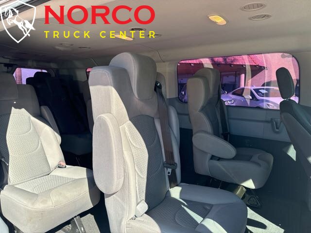 -- INSTALLED FEATURES: Front air conditioning, Front air conditioning zones: single, Rear air conditioning, Rear air conditioning zones: single, Front airbags: dual, Side airbags: front, Side curtain airbags: front / rear / third row, Antenna type: mast, Auxiliary audio input: jack, In-Dash CD: single disc, Radio: AM/FM, Radio data system, Total speakers: 8, ABS: 4-wheel, Braking assist, Electronic brakeforce distribution, Front brake diameter: 12.1, Front brake type: ventilated disc, Power brakes, Rear brake diameter: 12.1, Rear brake type: disc, Armrests: drivers seat / rear folding, Floor mat material: carpet, Floor material: carpet, Floor mats: front, Shift knob trim: urethane, Steering wheel trim: urethane, Assist handle: passenger side, Capless fuel filler system, Cargo area light, Center console: front console with storage, Cruise control, Cupholders: front / rear, Multi-function remote: keyless entry, One-touch windows: 1, Power outlet(s): 12V cargo area / 12V front, Power steering, Reading lights: front / rear, Rearview mirror: manual day/night, Steering wheel: tilt and telescopic, Steering wheel mounted controls: cruise control, Storage: door pockets, Vanity mirrors: dual illuminating, Axle ratio: 3.73, Alternator: 150 amps, Battery: maintenance-free, Battery rating: 610 CCA, Body side moldings: black, Bumper detail: rear step, Door handle color: black, Front bumper color: black, Grille color: chrome / chrome surround, Headlight bezel color: chrome, Mirror color: black, Rear bumper color: black, Rear trunk/liftgate: barn, Side door type: passenger-side manual sliding, Window trim: black, Infotainment screen size: 4 in., Clock, Digital odometer, Gauge: tachometer, Powertrain hour meter, Trip odometer, Warnings and reminders: low fuel level, Headlights: auto delay off / auto on/off / halogen, Side mirror adjustments: manual folding / power, OEM roof height: low, Camera system: rearview, Child safety door locks, Child seat anchors: LATCH system, Impact sensor: door unlock / post-collision safety system, Rearview monitor: in mirror, Fourth row seatbelts: 3-point, Front seatbelts: 3-point, Rear seatbelts: 3-point, Seatbelt pretensioners: front, Seatbelt warning sensor: front, Third row seatbelts: 3-point, Driver seat manual adjustments: lumbar / reclining / 4, Fourth row headrests: 4, Fourth row seat type: 50-50 split bench, Front headrests: adjustable / 2, Front seat type: bucket, Passenger seat manual adjustments: reclining / 4, Rear headrests: adjustable / 3, Rear seat folding: split, Rear seat manual adjustments: reclining, Rear seat type: 60-40 split bench, Third row headrests: adjustable / 3, Third row seat folding: split, Third row seat type: 40-60 split bench, Upholstery: cloth, Power door locks: auto-locking, Hill holder control, Roll stability control, Stability control, Traction control, Front shock type: gas, Front spring type: coil, Front stabilizer bar, Front struts: MacPherson, Front suspension classification: independent, Front suspension type: lower control arms, Rear shock type: gas, Rear spring type: leaf, Rear suspension classification: solid live axle, Rear suspension type: multi-leaf, Spare tire mount location: underbody, Spare tire size: full-size, Spare wheel type: steel, Tire Pressure Monitoring System, Tire type: all season, Wheel covers: full, Wheels: steel, Auxiliary transmission fluid cooler, Front wipers: rain sensing / variable intermittent, Power windows, Solar-tinted glass
