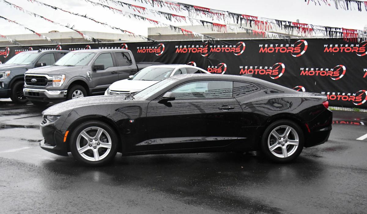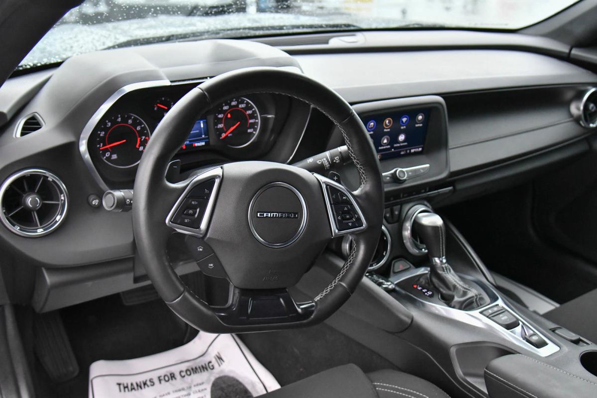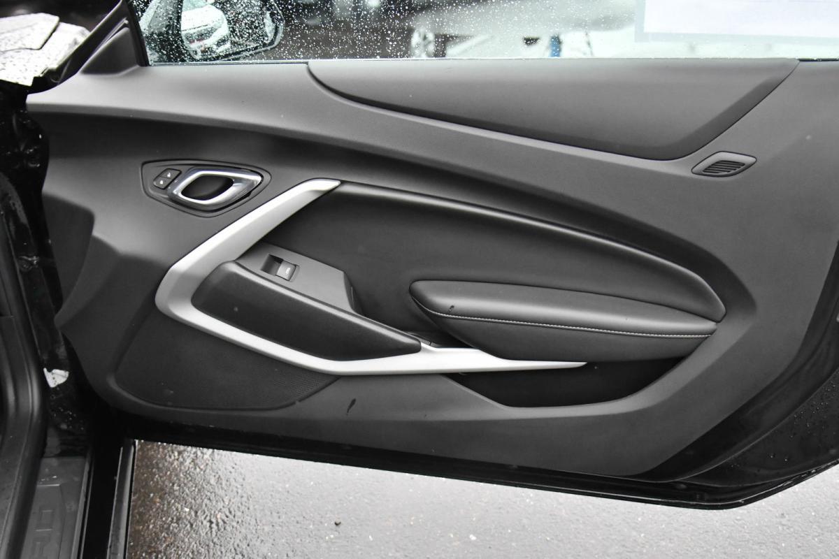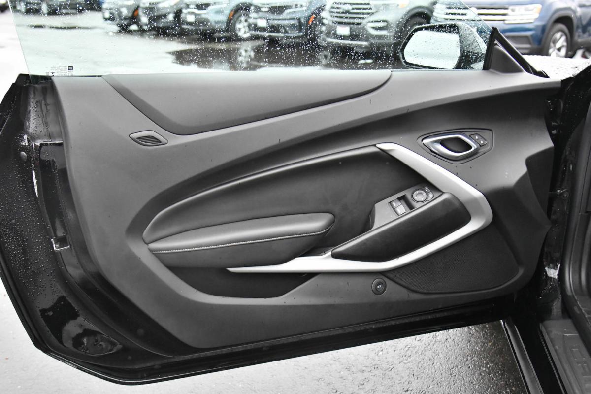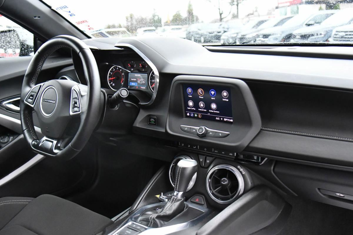 Scores 31 Highway MPG and 22 City MPG! This Chevrolet Camaro delivers a Gas V6 3.6L/222 engine powering this Automatic transmission. WHEELS, 18 (45.7 CM) SILVER-PAINTED ALUMINUM (STD), TRANSMISSION, AUTOMATIC includes transmission oil cooler and (BTV) remote vehicle starter system, TRANSMISSION, 8-SPEED.*This Chevrolet Camaro Comes Equipped with These Options *TIRES, 245/50R18, BLACKWALL, ALL-SEASON (STD), TIRE INFLATION KIT, SEATS, CLOTH FRONT SPORT BUCKET (STD), REMOTE VEHICLE STARTER SYSTEM, REAR AXLE, 2.77 RATIO, PADDLE-SHIFT MANUAL CONTROLS, LPO, WHEEL LOCKS, LICENSE PLATE BRACKET, FRONT, JET BLACK, SEAT TRIM, ENGINE, 3.6L V6, DI, VVT (335 hp [250 kW] @ 6800 rpm, 284 lb-ft of torque [383.4 N-m] @ 5300 rpm).