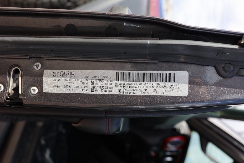 Priced below KBB Fair Purchase Price!**ONE OWNER-CLEAN CARFAX!!**, Apple CarPlay/Android Auto, 4G LTE Wi-Fi Hot Spot, 8.4" Radio & Premium Audio Group, 8.4" Touchscreen Display, Advanced Brake Assist, Advanced Safety Group, Auto-Dimming Rear-View Mirror, Blind Spot & Cross Path Detection, Body Color 3-Piece Hard Top, Cold Weather Group, Emergency/Assistance Call, For Details, Visit DriveUconnect.ca, Freedom Panel Storage Bag, Full Speed Forward Collision Warning Plus, GPS Navigation, HD Radio, Heated Front Seats, Heated Steering Wheel, No Soft Top, ParkSense Rear Park Assist System, Radio: Uconnect 4C Nav w/8.4" Display, Rear Window Defroster, Rear Window Wiper/Washer, Safety Group, SiriusXM Traffic Plus, SiriusXM Travel Link.Clean CARFAX.CARFAX One-Owner.Awards: * Motor Trend Automobiles of the year * ALG Residual Value Awards, Residual Value Awards * 2019 KBB.com 5-Year Cost to Own Awards * 2019 KBB.com 10 Best SUVs Under $30,000 * 2019 KBB.com 10 Coolest Cars Under $30,000 * 2019 KBB.com Our 10 Most Awarded Cars of 2019 * 2019 KBB.com Best Resale Value Awards