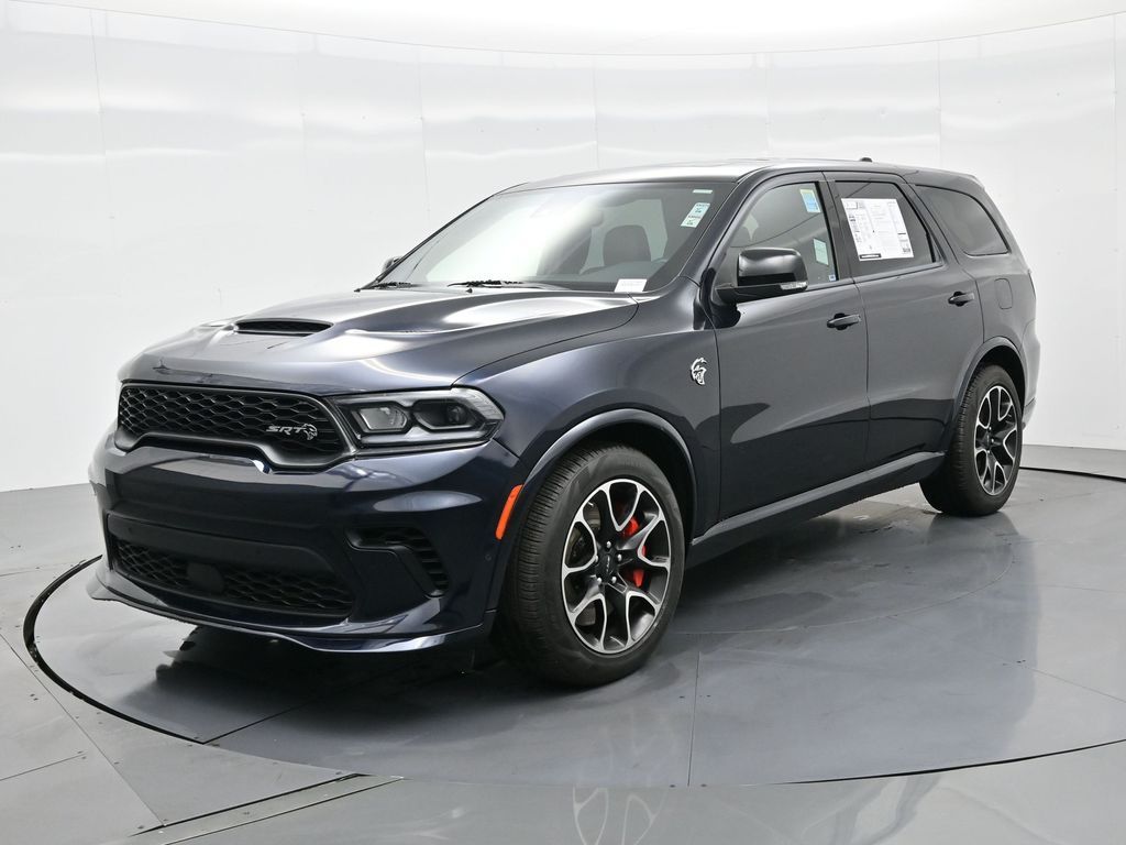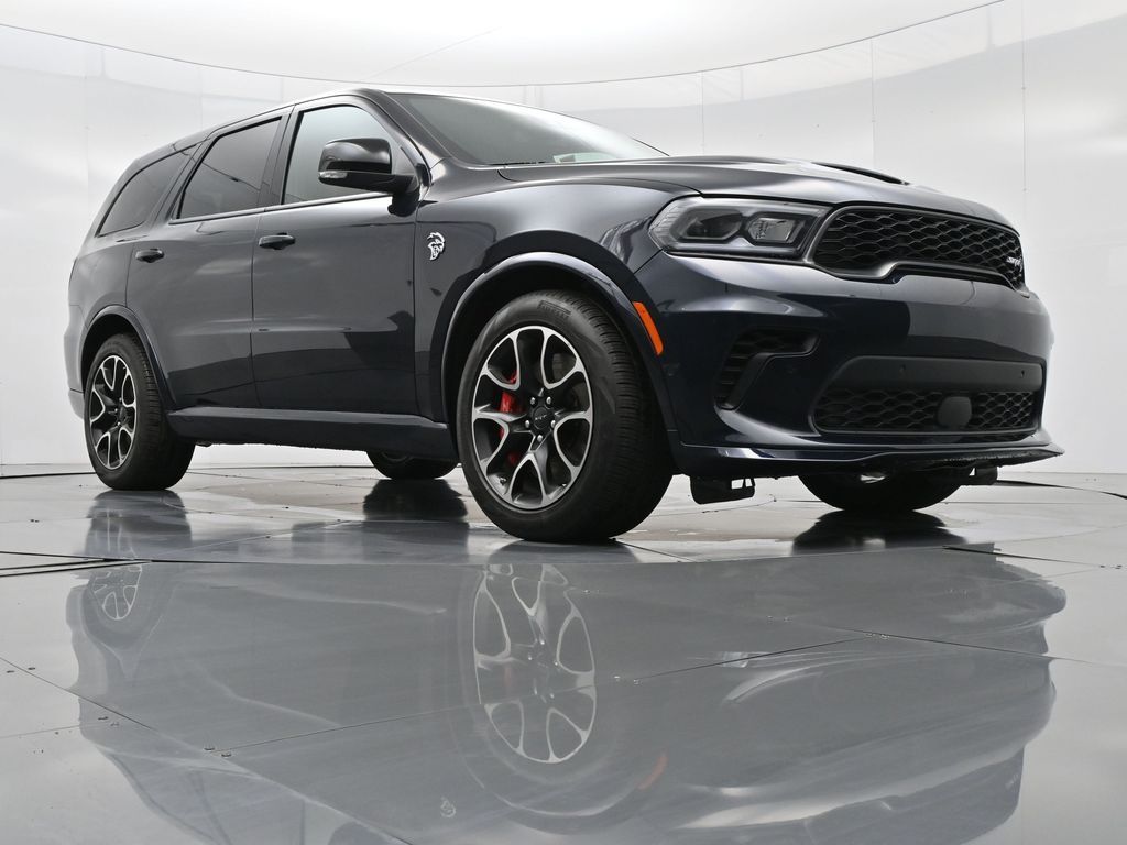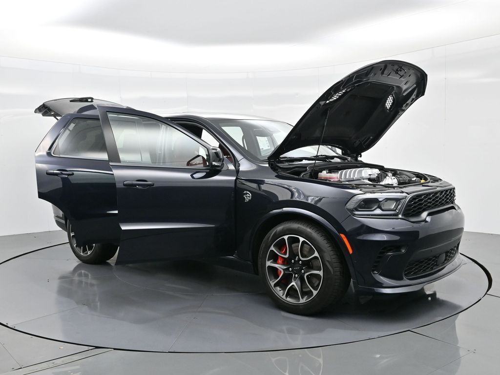 FACTORY WARRANTY, BELOW AVERAGE ODOMETER, FRESH OIL CHANGE, NEW FILTERS, NEW WIPERS, NEW BATTERY, Durango SRT Hellcat, 4D Sport Utility, 6.2L Supercharged HEMI V8 SRT, 8-Speed Automatic, AWD, 1 USB Charging Port in Console, 12V Auxiliary Power Outlet In Console, 19 harman/kardon Amplified Speakers w/Subwoofer, 2nd Row Console w/Armrest & Storage, 3rd Row Floor Mat & Full Console, 3rd row seats: split-bench, 7 & 4 Pin Wiring Harness, 825 Watt Amplifier, Adaptive Cruise Control w/Stop, Advanced Brake Assist, Alloy wheels, Apple CarPlay/Android Auto, Class IV Receiver Hitch, Compass, Forged Carbon Fiber Interior Accents, Front dual zone A/C, Full Speed Forward Collision Warning Plus, Heated front seats, Heated rear seats, Heated steering wheel, High Performance Laguna Leather Seats, Illuminated Rear Cupholders, Knee airbag, Lane Departure Warning Plus, Leather Trimmed Bucket Seats, Low tire pressure warning, Memory seat, Navigation system: TomTom, ParkView Rear Back-Up Camera, Power Liftgate, Power Sunroof, Premium Instrument Panel, Quick Order Package 2XY Hellcat Premium, Radio: Uconnect 5 Nav w/10.1" Display, Red Seat Belts, Remote keyless entry, Spoiler, Trailer Brake Control, Ventilated front seats, Wheels: 20" x 10" Machine Face w/Dark Pockets.For help with any Vehicle needs please call us directly at 951-621-1288.CARFAX One-Owner.