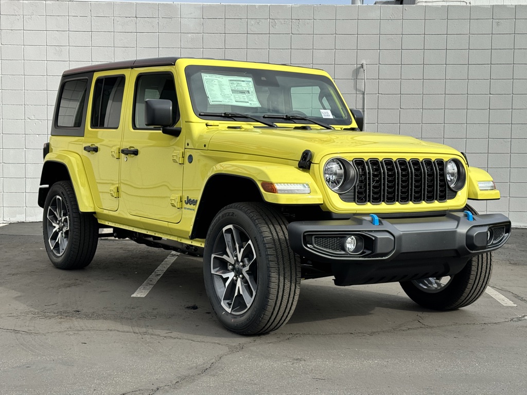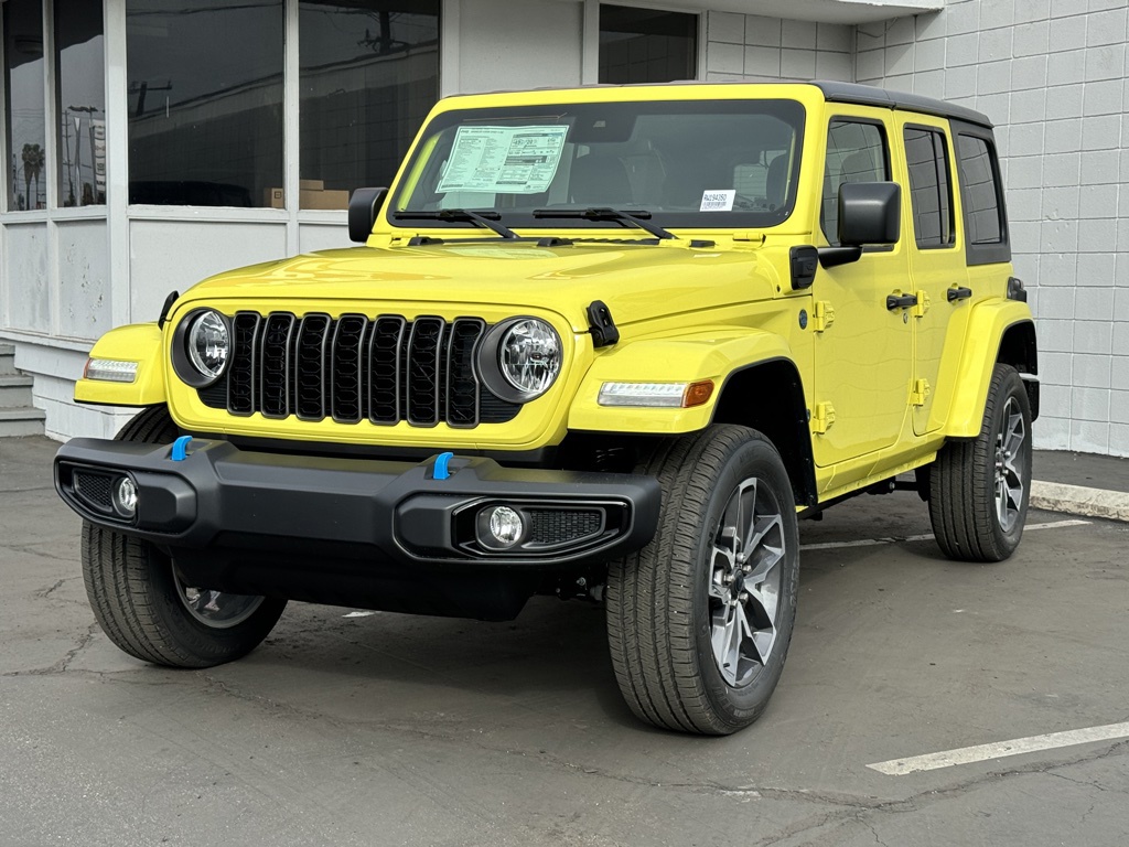 BLACK AND YELLO* Additional Savings may be available to certain groups or individuals. Please contact us to see if you qualify. *Net Cost includes a Factory Rebate, if applicable, on this vehicle and is valid on a cash or financed purchase only by an individual for their personal use. The sale price or net cost does not apply to a lease. *All Pricing and Advertised Prices for any/all vehicles offered for sale does not include dealer installed accessories. *The Factory Rebates may not be available on this vehicle if you elect to take advantage of a Special Alternative APR or Special Lease program. Some Factory Rebates are California Resident specific and may vary for residents of other states. We Only Provide 4 Gallons of Gas at Purchase. *No sales to Dealers, Brokers or Exporters. No out of state purchase, customers must be present to purchase. Please contact us for special Multi-Vehicle or Fleet pricing. Prices are plus government fees and taxes, any finance charges, $85 documentary fee, $33 electronic registration fee, any emission testing charge and $1.75 per new tire state tire fee. All vehicles are subject to prior sale. *While every reasonable effort is made to ensure the accuracy of this information, we are not responsible for any errors or omissions contained on these pages. Leasing & financing available on approved credit. Trade-ins accepted. The estimated selling price that appears after calculating dealer offers is for informational purposes, only. You may not qualify for the offers, incentives, discounts, or financing. Offers, incentives, discounts, or financing are subject to expiration and other restrictions. See dealer for qualifications and complete details. *Images, prices, and options shown, including vehicle color, trim, options, pricing and other specifications are subject to availability, incentive offerings, current pricing and credit worthiness.2.0L I4 DOHC.High Velocity Clearcoat2024 Jeep Wrangler Sport S 4xe 4WD 8-Speed Automatic 2.0L I4 DOHC**********All Pricing and Advertised Prices for any/all vehicles offered for sale does not include dealer installed accessories which can be purchased for an additional cost.********** The Factory Rebates may not be available on this vehicle if you elect to take advantage of a Special Alternative APR or Special Lease program. Some Factory Rebates are California Resident specific and may vary for residents of other states. NO sales to Dealers, Brokers or Exporters. For out of state purchase, customers must be present to purchase. If shipping is required, dealership must facilitate; no exceptions. Please contact us for special Multi-Vehicle or Fleet pricing. Prices are plus government fees and taxes, any finance charges, $85 documentary fee, $29 electronic registration fee, any emission testing charge and $1.75 per new tire state tire fee. *** We make every effort to provide accurate information, but please verify before purchasing. Leasing & financing available on approved credit. Trade-ins accepted. Subject to prior sale.