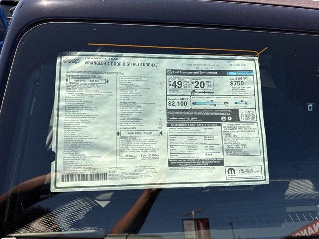 2.0L I4 DOHC.Black Clearcoat2024 Jeep Wrangler High Altitude 4xe 4WD 8-Speed Automatic 2.0L I4 DOHC Price includes: $3750 - Federal EV Tax Credit. Exp. 12/31/2024 $7500 - 2024 National Retail Consumer Cash . Exp. 10/31/2024