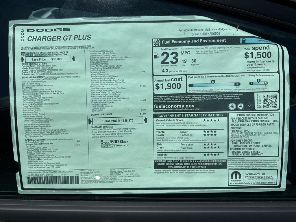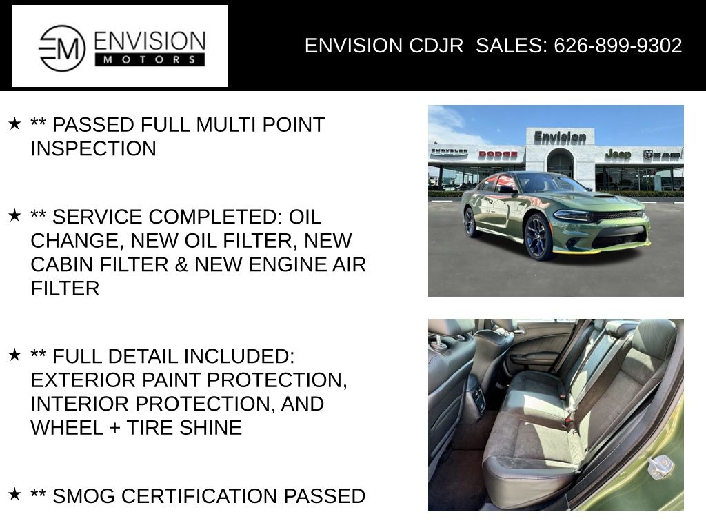 **NEW 2023 UNSOLD INVENTORY PRICED AT PRE-OWNED PRICES AND MANUFACTURER REBATES STILL APPLY****TAKE ADVANTAGE OF OUR LOW PRICES AND DRIVE A NEW VEHICLE MODEL 2023 TODAY**19/30 City/Highway MPG ** PASSED FULL MULTI POINT INSPECTION, ** SERVICE COMPLETED: OIL CHANGE, NEW OIL FILTER, NEW CABIN FILTER & NEW ENGINE AIR FILTER, ** FULL DETAIL INCLUDED: EXTERIOR PAINT PROTECTION, INTERIOR PROTECTION, AND WHEEL + TIRE SHINE, ** SMOG CERTIFICATION PASSED, ** BACKUP CAMERA, ** BLUETOOTH, ** APPLE CAR PLAY/ ANDROID AUTO, Black Artificial Leather.F8 Green2023 Dodge Charger GT RWD 8-Speed Automatic 3.6L V6 24V VVT