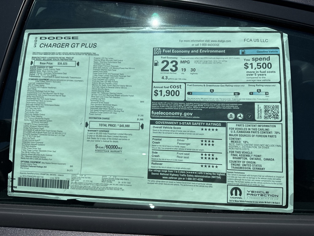 ** Additional Savings may be available to certain groups or individuals. Please contact us to see if you qualify. *Net Cost includes a Factory Rebate, if applicable, on this vehicle and is valid on a cash or financed purchase only by an individual for their personal use. The sale price or net cost does not apply to a lease. *All Pricing and Advertised Prices for any/all vehicles offered for sale does not include dealer installed accessories. *The Factory Rebates may not be available on this vehicle if you elect to take advantage of a Special Alternative APR or Special Lease program. Some Factory Rebates are California Resident specific and may vary for residents of other states. We Only Provide 4 Gallons of Gas at Purchase. *No sales to Dealers, Brokers or Exporters. No out of state purchase, customers must be present to purchase. Please contact us for special Multi-Vehicle or Fleet pricing. Prices are plus government fees and taxes, any finance charges, $85 documentary fee, $33 electronic registration fee, any emission testing charge and $1.75 per new tire state tire fee. All vehicles are subject to prior sale. *While every reasonable effort is made to ensure the accuracy of this information, we are not responsible for any errors or omissions contained on these pages. Leasing & financing available on approved credit. Trade-ins accepted. The estimated selling price that appears after calculating dealer offers is for informational purposes, only. You may not qualify for the offers, incentives, discounts, or financing. Offers, incentives, discounts, or financing are subject to expiration and other restrictions. See dealer for qualifications and complete details. *Images, prices, and options shown, including vehicle color, trim, options, pricing and other specifications are subject to availability, incentive offerings, current pricing and credit worthiness.19/30 City/Highway MPG ** CARFAX BUYBACK GUARANTEE **, ** PASSED FULL MULTI POINT INSPECTION, ** SERVICE COMPLETED: OIL CHANGE, NEW OIL FILTER, NEW CABIN FILTER & NEW ENGINE AIR FILTER, ** FULL DETAIL INCLUDED: EXTERIOR PAINT PROTECTION, INTERIOR PROTECTION, AND WHEEL + TIRE SHINE, ** SMOG CERTIFICATION PASSED, ** BACKUP CAMERA, ** BLUETOOTH, ** APPLE CAR PLAY/ ANDROID AUTO, Black Artificial Leather, Adaptive Cruise Control w/Stop, Advanced Brake Assist, Auto Adjust In Reverse Exterior Mirrors, Auto High Beam Headlamp Control, Auto-Dimming Exterior Driver Mirror, Black-Edged Premium Floormats, Blind Spot & Cross Path Detection, Blind Spot Memory/Power/Heat Mirror, Deluxe Security Alarm, Driver & Passenger Lower LED Lamps, Exterior Mirrors Courtesy Lamps, Exterior Mirrors w/Heating Element, Front & Rear LED Map Pockets, Front Overhead LED Lighting, Full Speed FWD Collision Warn Plus, Heated Front Seats, Heated Steering Wheel, Lane Departure Warning Plus, Nappa/Alcantara Performance Seat, Performance Steering Wheel, Plus Group, Power 2-Way Driver Lumbar Adjust, Power 2-Way Passenger Lumbar Adjust, Power Front Driver/Passenger Seats, Power Tilt/Telescope Steering Column, Premium-Stitched Dash Panel, Projector LED Fog Lamps, Quick Order Package 2EH, Radio/Driver Seat/Mirrors Memory, Rain Sensitive Windshield Wipers, Rear Armrest w/Cupholder Seat, Rhombi 2-Pc Wheel Center Cap, Steering Wheel Mounted Shift Control, Technology Group, Ventilated Front Seats, Wheels: 20" x 8" Machined w/Granite Pocket.Granite Crystal Metallic Clearcoat2023 Dodge Charger GT RWD 8-Speed Automatic 3.6L V6 24V VVT**********All Pricing and Advertised Prices for any/all vehicles offered for sale does not include dealer installed accessories which can be purchased for an additional cost.********** The Factory Rebates may not be available on this vehicle if you elect to take advantage of a Special Alternative APR or Special Lease program. Some Factory Rebates are California Resident specific and may vary for residents of other states. NO sales to Dealers, Brokers or Exporters. For out of state purcha