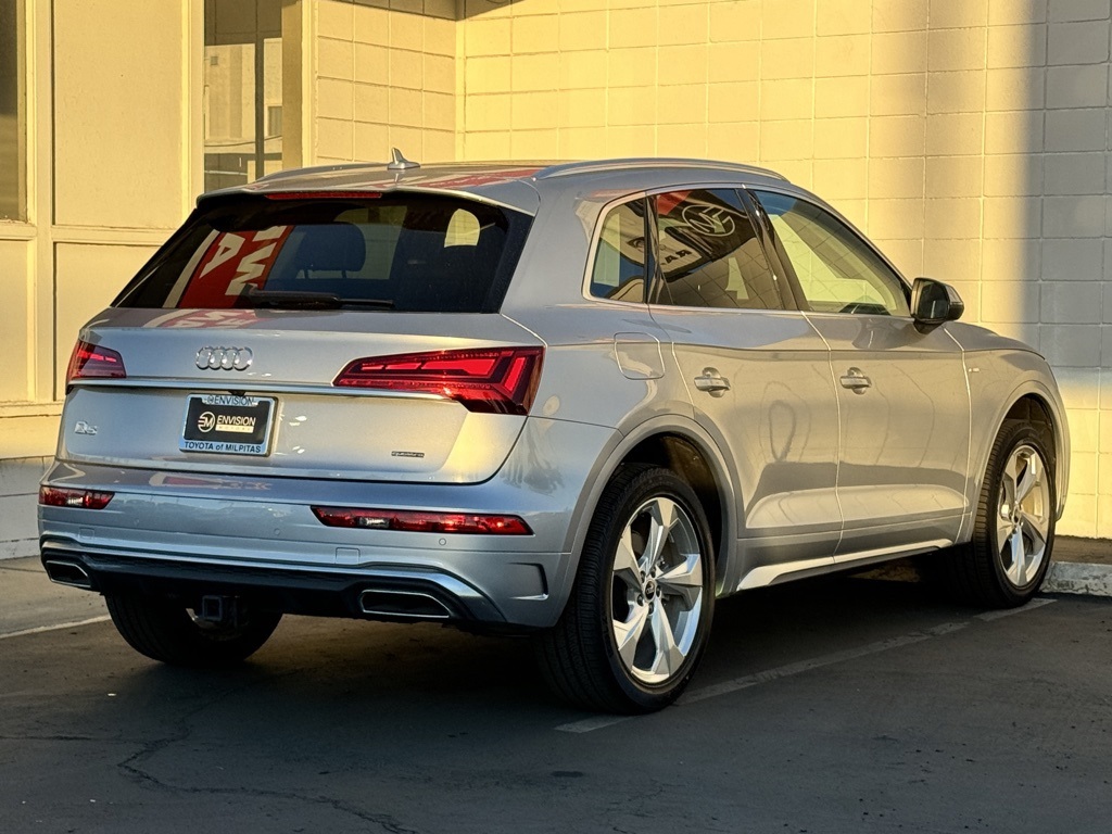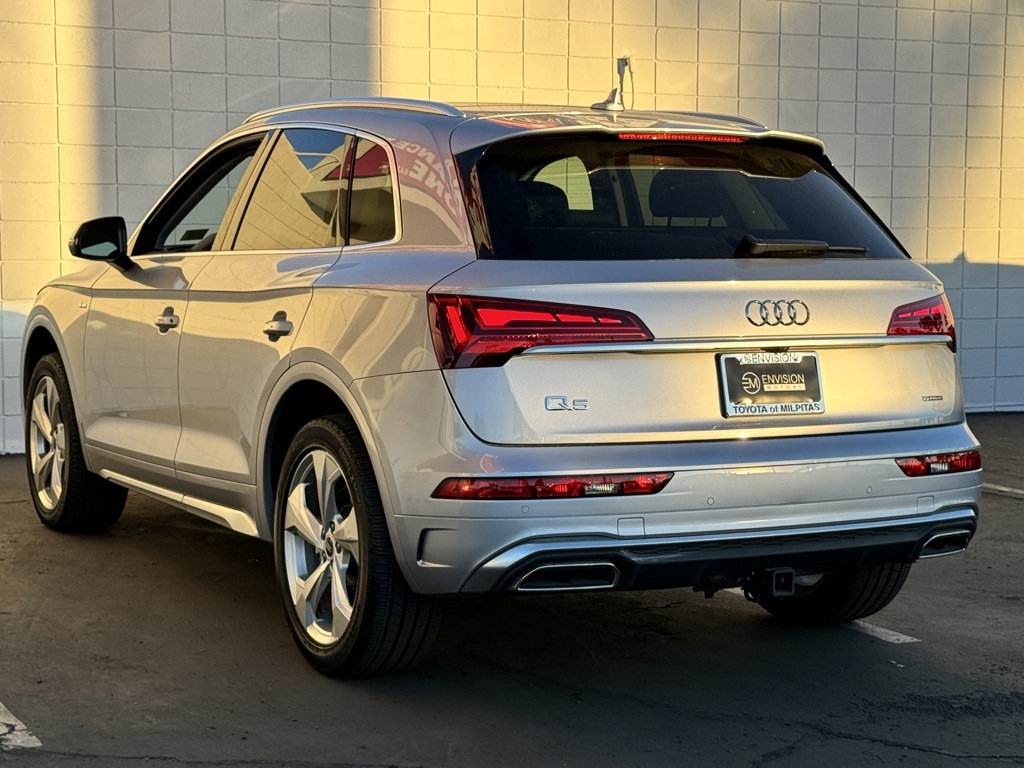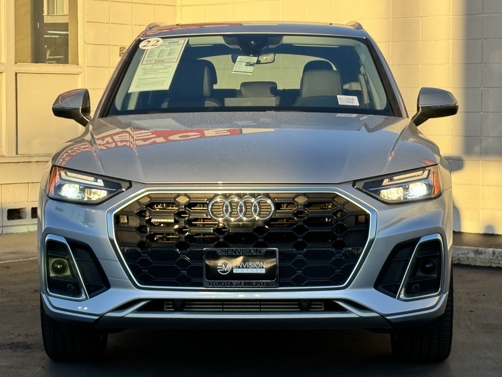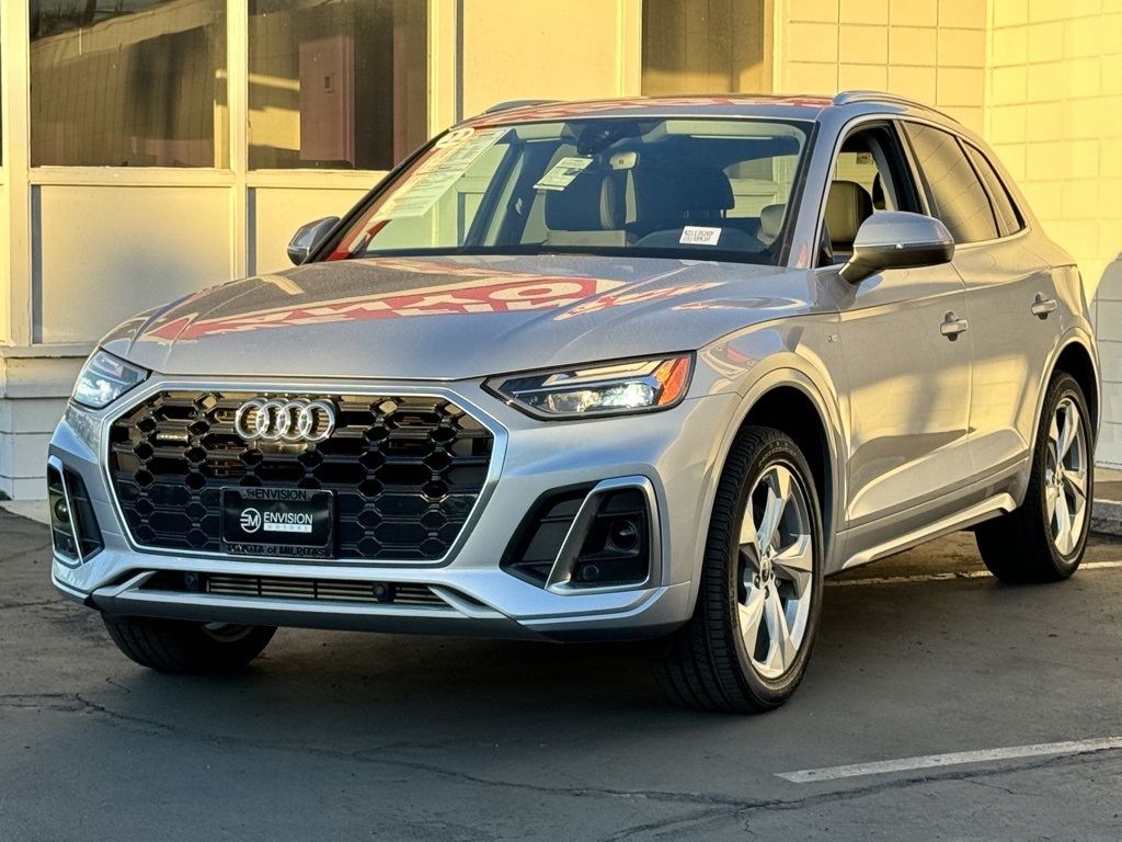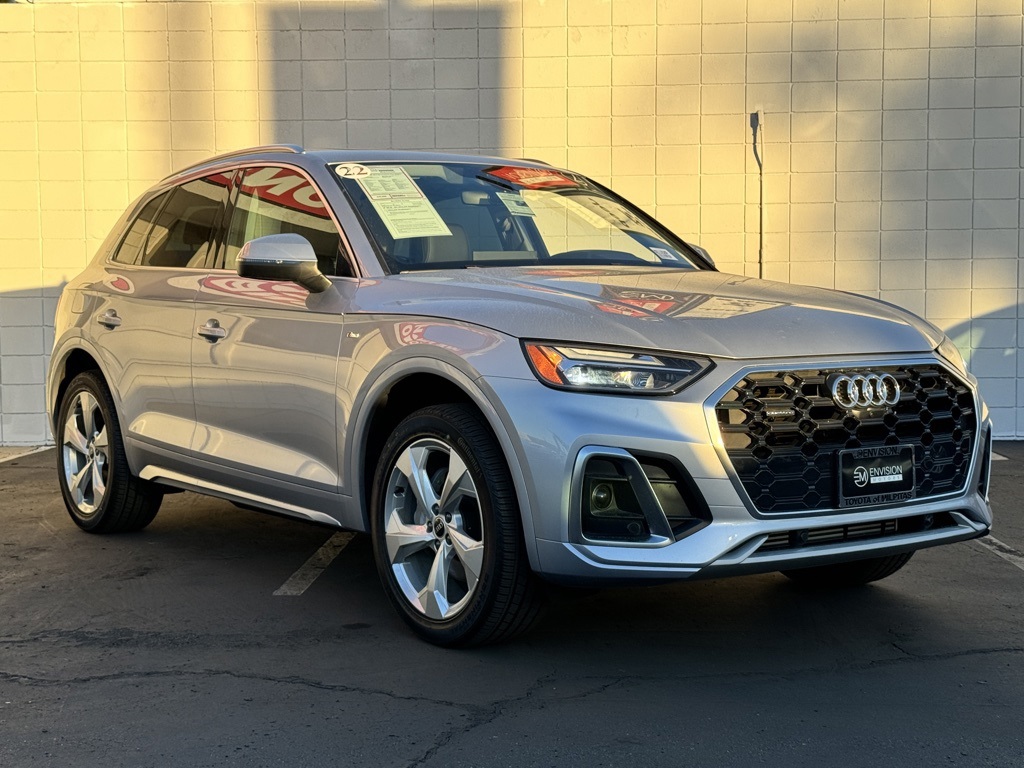 CARFAX One-Owner. Clean CARFAX.Odometer is 4735 miles below market average! 23/28 City/Highway MPG Black w/Leather Seating Surfaces, Adaptive Cruise Control w/Traffic Jam Assist, Audi Active Lane Assist, Audi Advanced Key, Audi Connect PRIME & PLUS, Audi Phone Box, Audi Virtual Cockpit Plus, Auto-Dimming Power Folding Exterior Mirrors, Bang & Olufsen Sound System w/3D Sound, Convenience Package, Driver Seat Memory, Hands-On Detection Steering Wheel, Heated Steering Wheel, Leatherette Covered Center Console & Door Armrests, MMI Navigation Plus, Navigation Package, Navigation System, Panoramic Sunroof, Power Adjustable Steering Column, Premium Plus Package, SiriusXM All Access Service, Top View Camera System, Wheels: 20" 5-Arm Design.Florett Silver Metallic2022 Audi Q5 45 S line Premium Plus quattro 7-Speed Automatic S tronic 2.0L Turbocharged**********All Pricing and Advertised Prices for any/all vehicles offered for sale does not include dealer installed accessories which can be purchased for an additional cost.********** The Factory Rebates may not be available on this vehicle if you elect to take advantage of a Special Alternative APR or Special Lease program. Some Factory Rebates are California Resident specific and may vary for residents of other states. NO sales to Dealers, Brokers or Exporters. For out of state purchase, customers must be present to purchase. If shipping is required, dealership must facilitate; no exceptions. Please contact us for special Multi-Vehicle or Fleet pricing. Prices are plus government fees and taxes, any finance charges, $85 documentary fee, $29 electronic registration fee, any emission testing charge and $1.75 per new tire state tire fee. *** We make every effort to provide accurate information, but please verify before purchasing. Leasing & financing available on approved credit. Trade-ins accepted. Subject to prior sale.