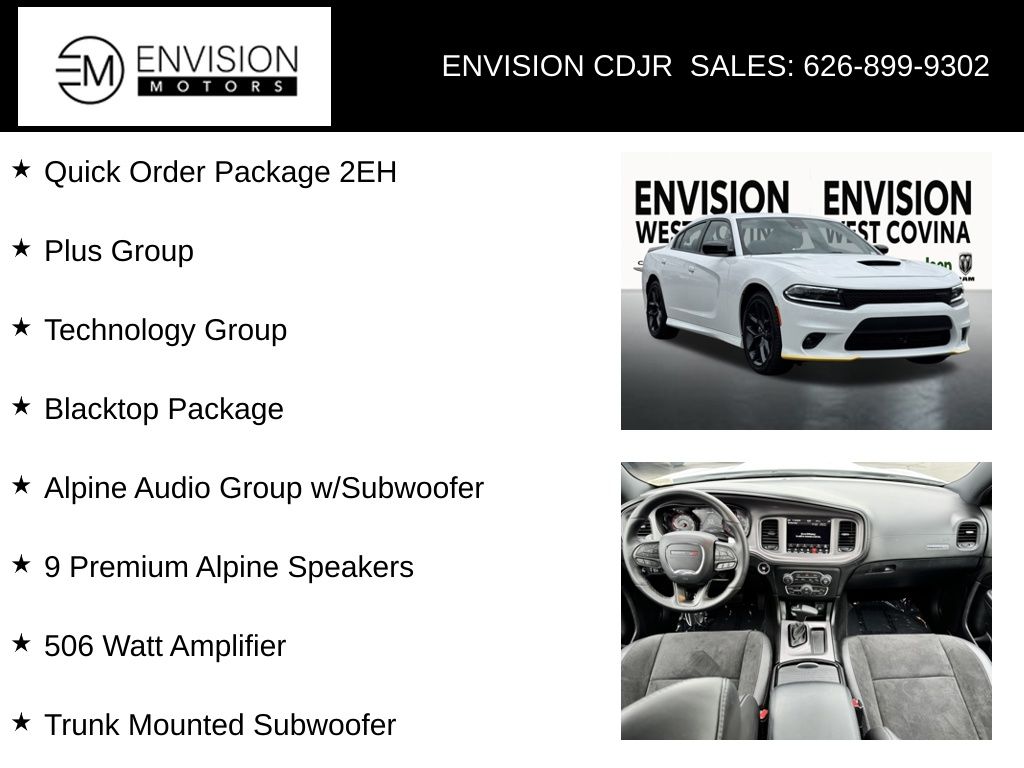 WE SPECIALIZE IN ALL CREDIT PROFILES! See what we can do for you! Call to find out (626) 899-9302.Certified. CARFAX One-Owner. Clean CARFAX.Odometer is 40302 miles below market average! 19/30 City/Highway MPG Black w/Cloth Performance Seats or Cloth Performance Seats w/Heat or Daytona Logo Nappa/Alcantara Seat or Nappa/Alcantara Performance Seat, 506 Watt Amplifier, 9 Premium Alpine Speakers, Adaptive Cruise Control w/Stop, Advanced Brake Assist, Alpine Audio Group w/Subwoofer, Auto Adjust In Reverse Exterior Mirrors, Auto High Beam Headlamp Control, Auto-Dimming Exterior Driver Mirror, Black 1-Piece Performance Spoiler, Black Badge, Black Dodge Grille Badge, Black-Edged Premium Floormats, Blacktop Package, Blind Spot & Cross Path Detection, Blind Spot Memory/Power/Heat Mirror, Deluxe Security Alarm, Driver & Passenger Lower LED Lamps, Exterior Mirrors Courtesy Lamps, Exterior Mirrors w/Heating Element, Front & Rear LED Map Pockets, Front Overhead LED Lighting, Full Speed FWD Collision Warn Plus, Gloss Black I/P Cluster Trim Rings, Heated Front Seats, Heated Steering Wheel, Lane Departure Warning Plus, Nappa/Alcantara Performance Seat, Performance Steering Wheel, Plus Group, Power 2-Way Driver Lumbar Adjust, Power 2-Way Passenger Lumbar Adjust, Power Front Driver/Passenger Seats, Power Sunroof, Power Tilt/Telescope Steering Column, Premium-Stitched Dash Panel, Projector LED Fog Lamps, Quick Order Package 2EH, Radio/Driver Seat/Mirrors Memory, Rain Sensitive Windshield Wipers, Rear Armrest w/Cupholder Seat, Rhombi 2-Pc Wheel Center Cap, Satin Black Charger Decklid Badge, Satin Black Dodge Tail Lamp Badge, Steering Wheel Mounted Shift Control, Surround Sound, Technology Group, Trunk Mounted Subwoofer, Ventilated Front Seats, Wheels: 20" x 8" Black Noise Painted, Wheels: 20" x 8" Machined w/Granite Pocket.White Knuckle Clearcoat2023 Dodge Charger GT RWD 8-Speed Automatic 3.6L V6 24V VVTFCA US LLC Certified Pre-Owned Details: * Warranty Deductible: $100 * Vehicles Up to 75,000 Miles and/or 5 Model Years. 24-Hour Towing & Roadside Assistance, Car Rental Allowance, CARFAX® Vehicle History ReportTM and an Introductory 3-month Subscription to SiriusXM® Satellite Radio & Certified Warranty Upgrades * Vehicle History * Limited Warranty: 3 Month/3,000 Mile (whichever comes first) after new car warranty expires or from certified purchase date * Transferable Warranty * 125 Point Inspection * Roadside Assistance * Powertrain Limited Warranty: 84 Month/100,000 Mile (whichever comes first) from original in-service date**********All Pricing and Advertised Prices for any/all vehicles offered for sale does not include dealer installed accessories which can be purchased for an additional cost.********** The Factory Rebates may not be available on this vehicle if you elect to take advantage of a Special Alternative APR or Special Lease program. Some Factory Rebates are California Resident specific and may vary for residents of other states. NO sales to Dealers, Brokers or Exporters. For out of state purchase, customers must be present to purchase. If shipping is required, dealership must facilitate; no exceptions. Please contact us for special Multi-Vehicle or Fleet pricing. Prices are plus government fees and taxes, any finance charges, $85 documentary fee, $29 electronic registration fee, any emission testing charge and $1.75 per new tire state tire fee. *** We make every effort to provide accurate information, but please verify before purchasing. Leasing & financing available on approved credit. Trade-ins accepted. Subject to prior sale.