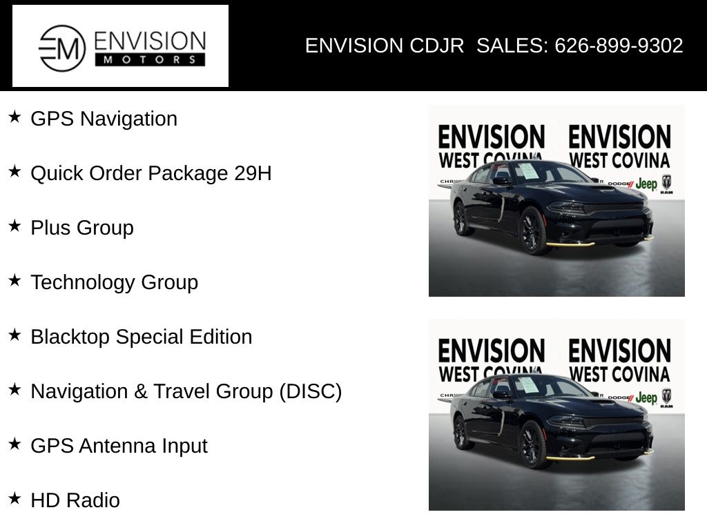WE SPECIALIZE IN ALL CREDIT PROFILES! See what we can do for you! Call to find out (626) 899-9302.Certified. CARFAX One-Owner. Clean CARFAX.Odometer is 6610 miles below market average! 18/27 City/Highway MPG AWD, Black w/Cloth Performance Seats or Cloth Performance Seats w/Heat or Daytona Logo Nappa/Alcantara Seat or Nappa/Alcantara Performance Seat, 1-Yr SiriusXM Guardian Trial, 2-Piece Shark Fin Antenna, 4G LTE Wi-Fi Hot Spot, 5-Year SiriusXM Traffic Service, 5-Year SiriusXM Travel Link Service, 8.4" Touchscreen Display, Adaptive Cruise Control w/Stop, Advanced Brake Assist, Apple CarPlay, Auto Adjust In Reverse Exterior Mirrors, Auto High Beam Headlamp Control, Auto-Dimming Exterior Driver Mirror, AWD Rhombi Black Badge, Black 1-Piece Performance Spoiler, Black Badge, Black Charger Exhaust Tips, Black Dodge Grille Badge, Black-Edged Premium Floormats, Blacktop Special Edition, Blacktop Special Edition IP Badge, Blind Spot & Cross Path Detection, Blind Spot Memory/Power/Heat Mirror, Compass Gauge, Deluxe Security Alarm, Driver & Passenger Lower LED Lamps, Exterior Mirrors Courtesy Lamps, Exterior Mirrors w/Heating Element, For Details, Visit DriveUconnect.com, Front & Rear LED Map Pockets, Front Overhead LED Lighting, Front Splash Guards, Full Speed FWD Collision Warn Plus, Gloss Black I/P Cluster Trim Rings, Google Android Auto, GPS Antenna Input, GPS Navigation, HD Radio, Heated Front Seats, Heated Steering Wheel, Integrated Center Stack Radio, Integrated Voice Command w/Bluetooth, Lane Departure Warning Plus, Media Hub (2 USB, AUX), Nappa/Alcantara Performance Seat, Navigation & Travel Group (DISC), Performance Steering Wheel, Plus Group, Power 2-Way Driver Lumbar Adjust, Power 2-Way Passenger Lumbar Adjust, Power Front Driver/Passenger Seats, Power Tilt/Telescope Steering Column, Premium-Stitched Dash Panel, Projector LED Fog Lamps, Quick Order Package 29H, Radio: Uconnect 4C Nav w/8.4" Display (DISC), Radio/Driver Seat/Mirrors Memory, Rain Sensitive Windshield Wipers, Real Carbon Fiber Interior Accents, Rear Armrest w/Cupholder Seat, Rhombi 2-Pc Wheel Center Cap, Satin Black Charger Decklid Badge, Satin Black Dodge Tail Lamp Badge, SiriusXM Traffic Plus, SiriusXM Travel Link, Steering Wheel Mounted Shift Control, Technology Group, USB Host Flip, Ventilated Front Seats, Wheels: 20" x 8" Black Noise AWD.Pitch Black Clearcoat2023 Dodge Charger GT AWD 8-Speed Automatic 3.6L V6 24V VVTFCA US LLC Certified Pre-Owned Details: * Warranty Deductible: $100 * 125 Point Inspection * Roadside Assistance * Transferable Warranty * Powertrain Limited Warranty: 84 Month/100,000 Mile (whichever comes first) from original in-service date * Vehicle History * Vehicles Up to 75,000 Miles and/or 5 Model Years. 24-Hour Towing & Roadside Assistance, Car Rental Allowance, CARFAX® Vehicle History ReportTM and an Introductory 3-month Subscription to SiriusXM® Satellite Radio & Certified Warranty Upgrades * Limited Warranty: 3 Month/3,000 Mile (whichever comes first) after new car warranty expires or from certified purchase date**********All Pricing and Advertised Prices for any/all vehicles offered for sale does not include dealer installed accessories which can be purchased for an additional cost.********** The Factory Rebates may not be available on this vehicle if you elect to take advantage of a Special Alternative APR or Special Lease program. Some Factory Rebates are California Resident specific and may vary for residents of other states. NO sales to Dealers, Brokers or Exporters. For out of state purchase, customers must be present to purchase. If shipping is required, dealership must facilitate; no exceptions. Please contact us for special Multi-Vehicle or Fleet pricing. Prices are plus government fees and taxes, any finance charges, $85 documentary fee, $29 electronic registration fee, any emission testing charge and $1.75 per new tire state tire fee. *** We make every effort to provide accurate information,