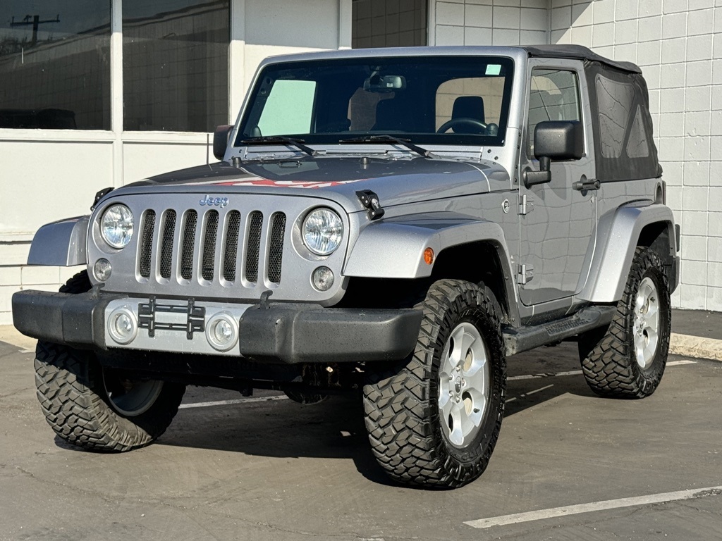 New Price! Clean CARFAX.Billet Metallic Clearcoat2014 Jeep Wrangler Sahara 4WD 5-Speed Automatic 3.6L V6 24V VVT**********All Pricing and Advertised Prices for any/all vehicles offered for sale does not include dealer installed accessories which can be purchased for an additional cost.********** The Factory Rebates may not be available on this vehicle if you elect to take advantage of a Special Alternative APR or Special Lease program. Some Factory Rebates are California Resident specific and may vary for residents of other states. NO sales to Dealers, Brokers or Exporters. For out of state purchase, customers must be present to purchase. If shipping is required, dealership must facilitate; no exceptions. Please contact us for special Multi-Vehicle or Fleet pricing. Prices are plus government fees and taxes, any finance charges, $85 documentary fee, $29 electronic registration fee, any emission testing charge and $1.75 per new tire state tire fee. *** We make every effort to provide accurate information, but please verify before purchasing. Leasing & financing available on approved credit. Trade-ins accepted. Subject to prior sale.Awards: * 2014 KBB.com 10 Best SUVs Under $25,000 * 2014 KBB.com 10 Coolest New Cars Under $25,000 * 2014 KBB.com Best Resale Value Awards