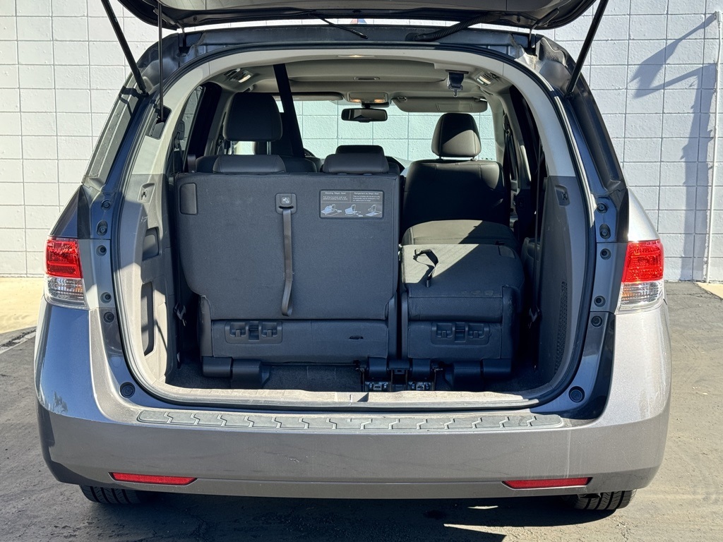 CARFAX One-Owner. Clean CARFAX.Odometer is 45784 miles below market average! 19/28 City/Highway MPGGray2014 Honda Odyssey EX-L FWD 6-Speed Automatic 3.5L V6**********All Pricing and Advertised Prices for any/all vehicles offered for sale does not include dealer installed accessories which can be purchased for an additional cost.********** The Factory Rebates may not be available on this vehicle if you elect to take advantage of a Special Alternative APR or Special Lease program. Some Factory Rebates are California Resident specific and may vary for residents of other states. NO sales to Dealers, Brokers or Exporters. For out of state purchase, customers must be present to purchase. If shipping is required, dealership must facilitate; no exceptions. Please contact us for special Multi-Vehicle or Fleet pricing. Prices are plus government fees and taxes, any finance charges, $85 documentary fee, $29 electronic registration fee, any emission testing charge and $1.75 per new tire state tire fee. *** We make every effort to provide accurate information, but please verify before purchasing. Leasing & financing available on approved credit. Trade-ins accepted. Subject to prior sale.Awards: * 2014 KBB.com 12 Best Family Cars * 2014 KBB.com Brand Image AwardsKelley Blue Book Brand Image Awards are based on the Brand Watch(tm) study from Kelley Blue Book Market Intelligence. Award calculated among non-luxury shoppers. For more information, visit www.kbb.com. Kelley Blue Book is a registered trademark of Kelley Blue Book Co., Inc.Reviews: * Agile handling; fuel-efficient V6; quiet cabin; configurable second-row seat; easy-to-fold third-row seat. Source: Edmunds * The 2014 Honda Odyssey has a wide, low stance with a modern aerodynamic feel. Its fresh, angled lines, and lightning bolt styling on the side, combined with 2014 updates to its front end, grille, and rear taillights result in a bold overall design. Take into consideration its great records for reliability and safety combined with fact that it is enjoyable and comfortable to drive, and this is one vehicle should not be missed. On the inside, the Honda Odyssey provides abundant seating and cargo space. Depending on the trim level you select, it can seat up to 7 or 8 passengers. The third row seats are split, and each seat can fold flat into the floor. The outside seats in the second row can slide towards the walls, so that three child safety seats can fit next to one another. The Multi-Function 2nd-Row Center Seat, on EX trims and above, can either fold forward to become a center console or slide forward 5.5 inches to enable a child seat to be closer to the driver and front passenger. For extra cargo space, one or all of the second row seats can be removed as well. Powering the 2014 Odyssey is a 3.5-Liter V6 engine, with 248 Horsepower, which gets an EPA estimated 19 MPG City and 28 MPG Highway. New for 2014, all trims now come standard with a 6-speed automatic transmission. The base Odyssey, comes standard with such items as a rearview camera, an AM FM CD Radio with 7 speakers and a color 8-inch interface screen, Bluetooth connectivity, and power front seats. Higher trims come with features like power sliding doors, LaneWatch camera system, navigation, 3-zone climate control, leather, and a power lift tailgate. The top-of-the-line Touring Elite trim gives you things like the amazing Honda DVD Ultrawide Rear Entertainment System, and a premium 12 speaker sound system with surround sound. For 2014, the Touring Elite also gives you the convenience of the innovative HondaVac, which is a vacuum cleaner integrated with the car to help fight day-to-day messes. Source: The Manufacturer Summary * If an SUV is too big and fuel-thirsty, the Odyssey will provide all the room you need and then some, not to mention easy-access sliding side doors. When it comes to fuel economy, the Odyssey’s highway rating of 28 mpg handily trumps that of its rivals. Source: KBB.com
