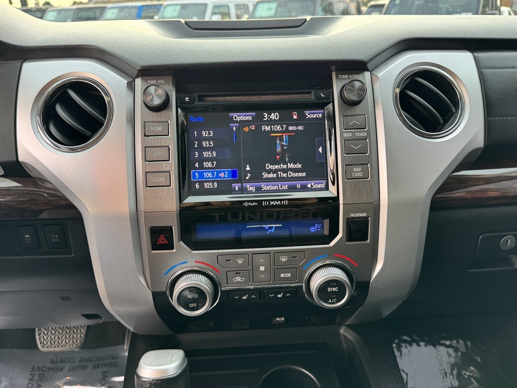 Black Leather, Navigation System.Black2015 Toyota Tundra Limited RWD 6-Speed Automatic Electronic with Overdrive i-Force 5.7L V8 DOHC 32V LEV**********All Pricing and Advertised Prices for any/all vehicles offered for sale does not include dealer installed accessories which can be purchased for an additional cost.********** The Factory Rebates may not be available on this vehicle if you elect to take advantage of a Special Alternative APR or Special Lease program. Some Factory Rebates are California Resident specific and may vary for residents of other states. NO sales to Dealers, Brokers or Exporters. For out of state purchase, customers must be present to purchase. If shipping is required, dealership must facilitate; no exceptions. Please contact us for special Multi-Vehicle or Fleet pricing. Prices are plus government fees and taxes, any finance charges, $85 documentary fee, $29 electronic registration fee, any emission testing charge and $1.75 per new tire state tire fee. *** We make every effort to provide accurate information, but please verify before purchasing. Leasing & financing available on approved credit. Trade-ins accepted. Subject to prior sale.Awards: * ALG Residual Value Awards, Residual Value AwardsReviews: * The 2015 Tundra full-size pickup truck has allure with Toyota’s reputation for quality in general and this model’s excellent resale value in particular. It also has deep American roots: The truck was designed and is made in America. Source: KBB.com * Toyota's full-size truck, the Tundra is a hard-core workhorse with an edgy, and exciting look that stands out from the competition. Dependent on trim, it is available in 3 sizes: Regular Cab, Double cab, and CrewMax and engine possibilities that include a 4.0L V6 with 270HP, a 4.6L i-FORCE V8 with 310HP, or the absolutely incredible 5.7L V8 with 381 HP and 401 lb.-ft. of torque. As an option on all models, you can get it with 4WDemand part-time 4WD with electronically controlled transfer case, Automatic Limited-Slip Differential and Traction Control. For the exterior, it has a hood that is higher, a grille that is wider and with a different look for each of the 5 available trims. The Tundra's body has a much more aggressive look overall with strong chiseled angles, newly squared off fenders, and a restyled tailgate with a large embossed Tundra logo and an integrated spoiler. Bluetooth and a Backup camera now come standard on all models. The Base Model SR comes with the Entune audio system with a 6.1-inch touch-screen, a USB port, and cruise control. Step up to the SR5 trim and gain a 7-inch touch-screen, HD Radio, and a manual sliding window in the rear. In the Limited trim, enjoy power and heated leather front bucket seats, navigation and dual-zone climate control. The Platinum adds even more with LED daytime running lights, a power tilt/slide moonroof, Entune Premium JBL Audio with App Suite and Navigation, 20-inch alloy wheels, and parking assist sonar. The 1794 Edition, which is Western in theme, is in honor of the founding year of the Texas ranch where the factory that builds the Tundra now sits. Having many of the same features as the platinum, it uses ultra-suede accents, saddle brown leather, and wood-style trim. Source: The Manufacturer Summary * Strong V8 powertrains; large double cab with traditional rear doors; colossal CrewMax cab; unique off-road-themed TRD Pro model. Source: Edmunds