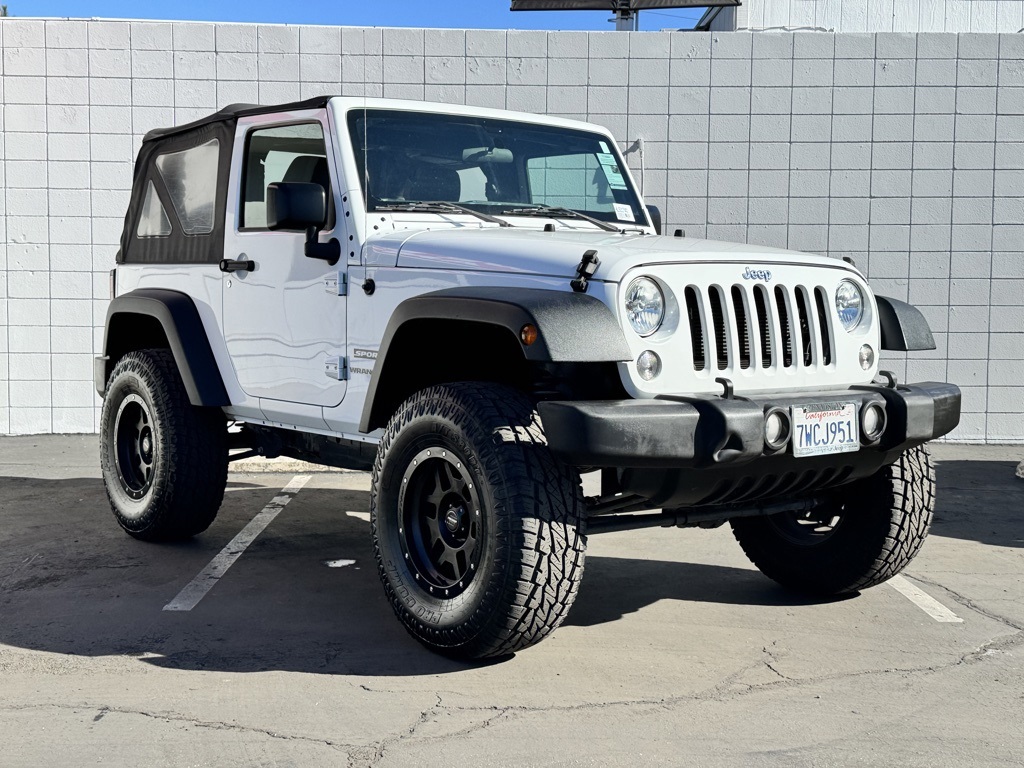 Clean CARFAX.Quick Order Package 24B.Bright White Clearcoat2017 Jeep Wrangler Sport 4WD 5-Speed Automatic 3.6L V6 24V VVT**********All Pricing and Advertised Prices for any/all vehicles offered for sale does not include dealer installed accessories which can be purchased for an additional cost.********** The Factory Rebates may not be available on this vehicle if you elect to take advantage of a Special Alternative APR or Special Lease program. Some Factory Rebates are California Resident specific and may vary for residents of other states. NO sales to Dealers, Brokers or Exporters. For out of state purchase, customers must be present to purchase. If shipping is required, dealership must facilitate; no exceptions. Please contact us for special Multi-Vehicle or Fleet pricing. Prices are plus government fees and taxes, any finance charges, $85 documentary fee, $29 electronic registration fee, any emission testing charge and $1.75 per new tire state tire fee. *** We make every effort to provide accurate information, but please verify before purchasing. Leasing & financing available on approved credit. Trade-ins accepted. Subject to prior sale.Awards: * 2017 KBB.com Best Resale Value Awards * 2017 KBB.com 10 Most Awarded Cars * 2017 KBB.com 10 Most Fun SUVs * 2017 KBB.com 10 Coolest Cars Under $25,000 * 2017 KBB.com 10 Best SUVs Under $25,000 * 2017 KBB.com 10 Most Awarded Brands
