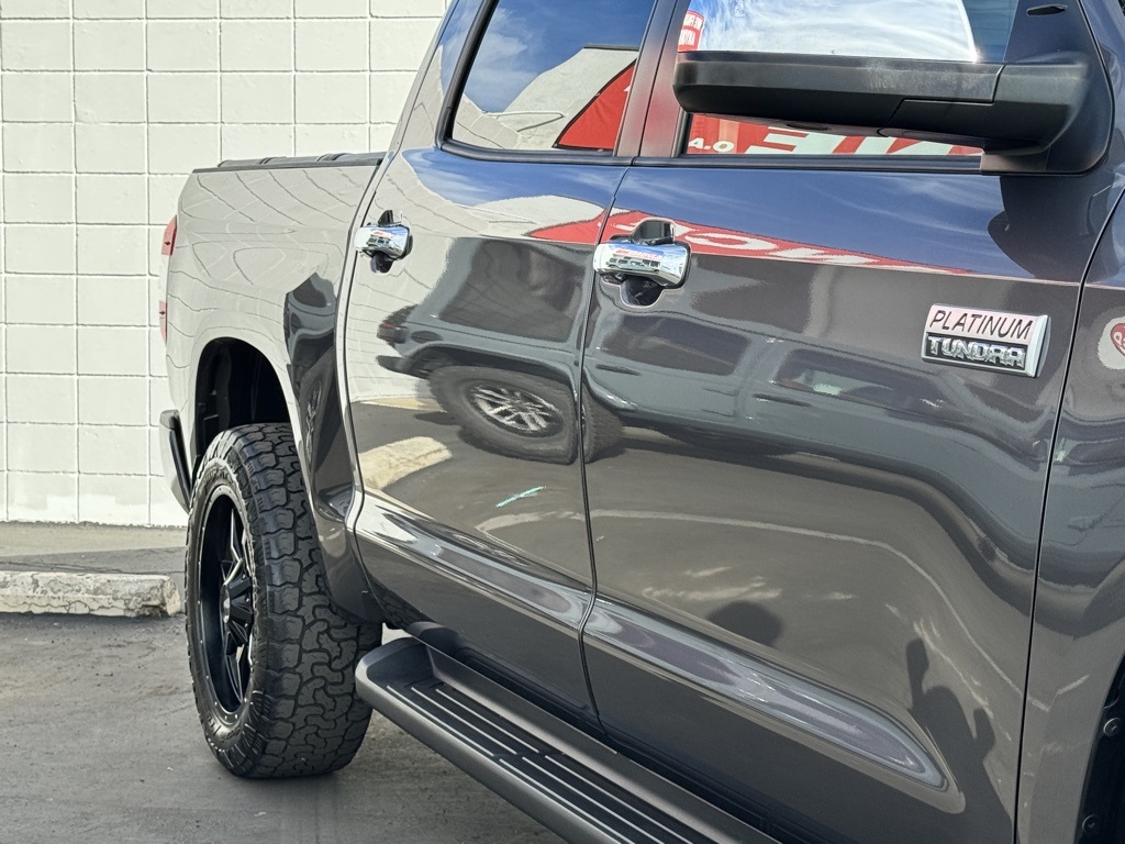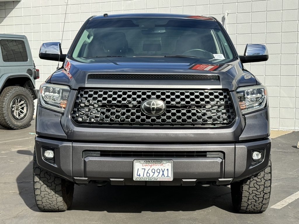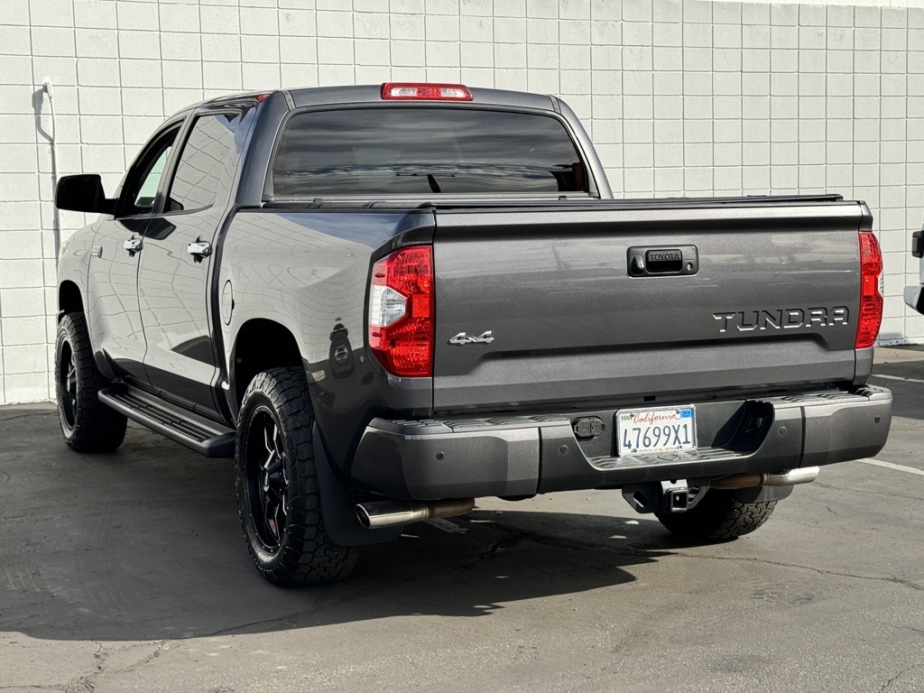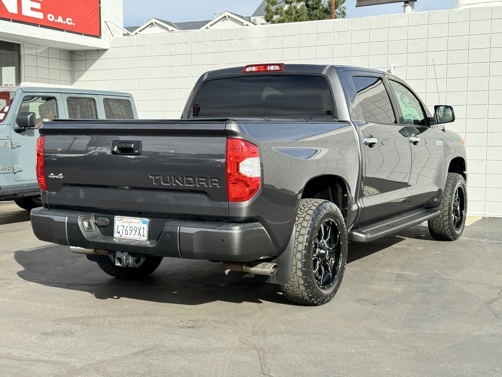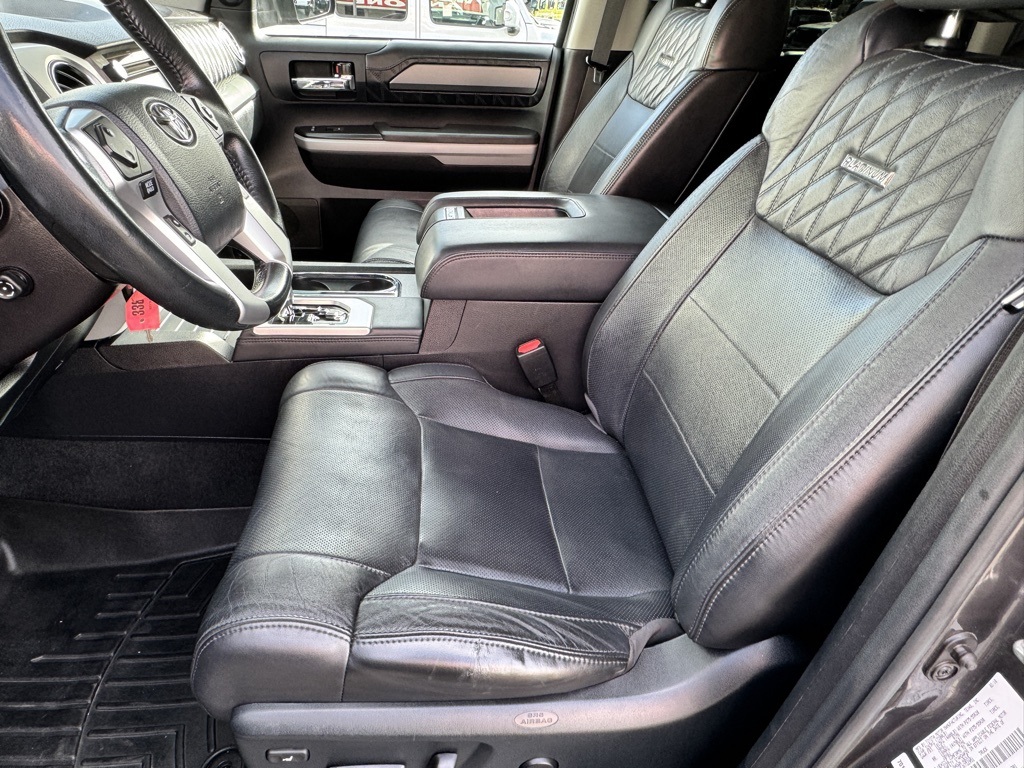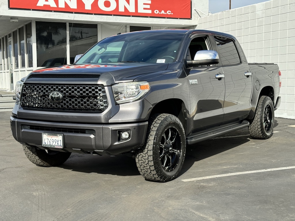 Clean CARFAX.4WD, Black w/Leather Seat Trim or Leather Seat Trim w/TRD Off Road Package, ABS brakes, Active Cruise Control, Alloy wheels, Compass, Electronic Stability Control, Front dual zone A/C, Heated & Ventilated Front Bucket Seats, Heated door mirrors, Heated front seats, Illuminated entry, Low tire pressure warning, Navigation System, Power Tilt & Slide Moonroof w/Sliding Sunshade, Remote keyless entry, Traction control.Magnetic Gray Metallic2018 Toyota Tundra Platinum 4WD 6-Speed Automatic Electronic with Overdrive 5.7L 8-Cylinder SMPI DOHC**********All Pricing and Advertised Prices for any/all vehicles offered for sale does not include dealer installed accessories which can be purchased for an additional cost.********** The Factory Rebates may not be available on this vehicle if you elect to take advantage of a Special Alternative APR or Special Lease program. Some Factory Rebates are California Resident specific and may vary for residents of other states. NO sales to Dealers, Brokers or Exporters. For out of state purchase, customers must be present to purchase. If shipping is required, dealership must facilitate; no exceptions. Please contact us for special Multi-Vehicle or Fleet pricing. Prices are plus government fees and taxes, any finance charges, $85 documentary fee, $29 electronic registration fee, any emission testing charge and $1.75 per new tire state tire fee. *** We make every effort to provide accurate information, but please verify before purchasing. Leasing & financing available on approved credit. Trade-ins accepted. Subject to prior sale.Awards: * 2018 KBB.com Best Resale Value Awards * 2018 KBB.com 10 Most Awarded Brands