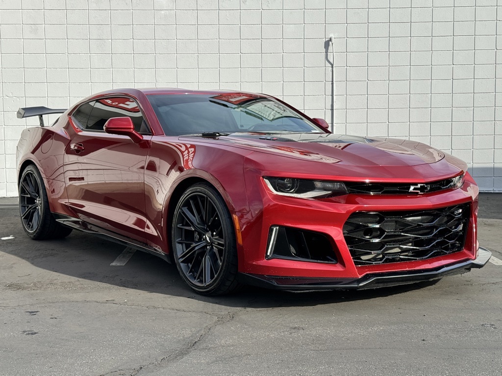 Clean CARFAX.Odometer is 6649 miles below market average! ULTRA RARE 1LE WITH LOW LOW MILES!, Exposed Carbon Fiber Weave Hood Insert, Exposed Weave Carbon Fiber Rear Spoiler, Fixed Rear Seat, Gray Outdoor Vehicle Cover w/ZL1 Logo (LPO), Low-Gloss Black Outside Rearview Mirrors, Performance Suspension w/DSSV Dampers, Preferred Equipment Group ZL1, Premium Carpeted Floor Mats w/ZL1 Logo (LPO), Red Calipers, Satin Black Hood Wrap, Wheels: 19" x 11" Fr & 19" x 12" Rr Low Gloss Blk, ZL1 1LE Extreme Track Performance Package, ZL1 Protection Package (LPO).Garnet Red Tintcoat2018 Chevrolet Camaro ZL1 RWD 10-Speed Automatic 6.2L V8 Supercharged**********All Pricing and Advertised Prices for any/all vehicles offered for sale does not include dealer installed accessories which can be purchased for an additional cost.********** The Factory Rebates may not be available on this vehicle if you elect to take advantage of a Special Alternative APR or Special Lease program. Some Factory Rebates are California Resident specific and may vary for residents of other states. NO sales to Dealers, Brokers or Exporters. For out of state purchase, customers must be present to purchase. If shipping is required, dealership must facilitate; no exceptions. Please contact us for special Multi-Vehicle or Fleet pricing. Prices are plus government fees and taxes, any finance charges, $85 documentary fee, $29 electronic registration fee, any emission testing charge and $1.75 per new tire state tire fee. *** We make every effort to provide accurate information, but please verify before purchasing. Leasing & financing available on approved credit. Trade-ins accepted. Subject to prior sale.Awards: * JD Power Dependability Study * Car and Driver 10 Best Cars * 2018 KBB.com 5-Year Cost to Own Awards * 2018 KBB.com 10 Best Used Sports Cars Under $30,000 * 2018 KBB.com 10 Coolest Cars Under $25,000 * 2018 KBB.com 10 Most Awarded BrandsCar and Driver, January 2017.