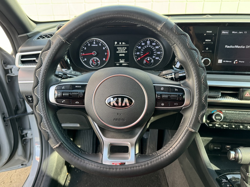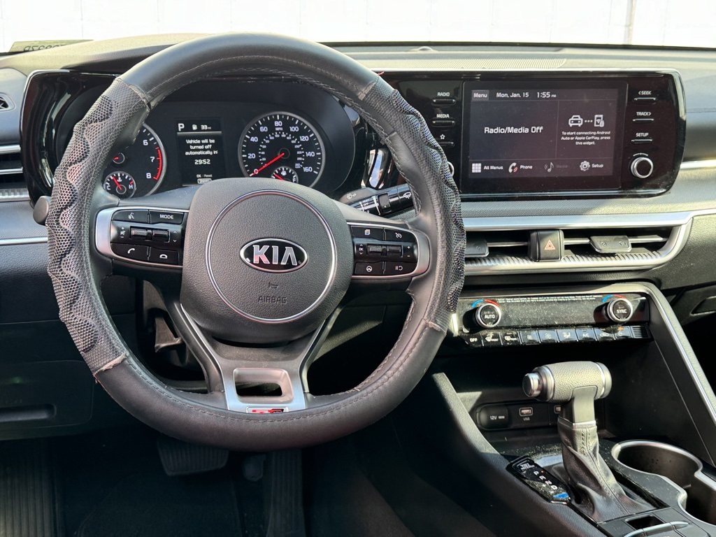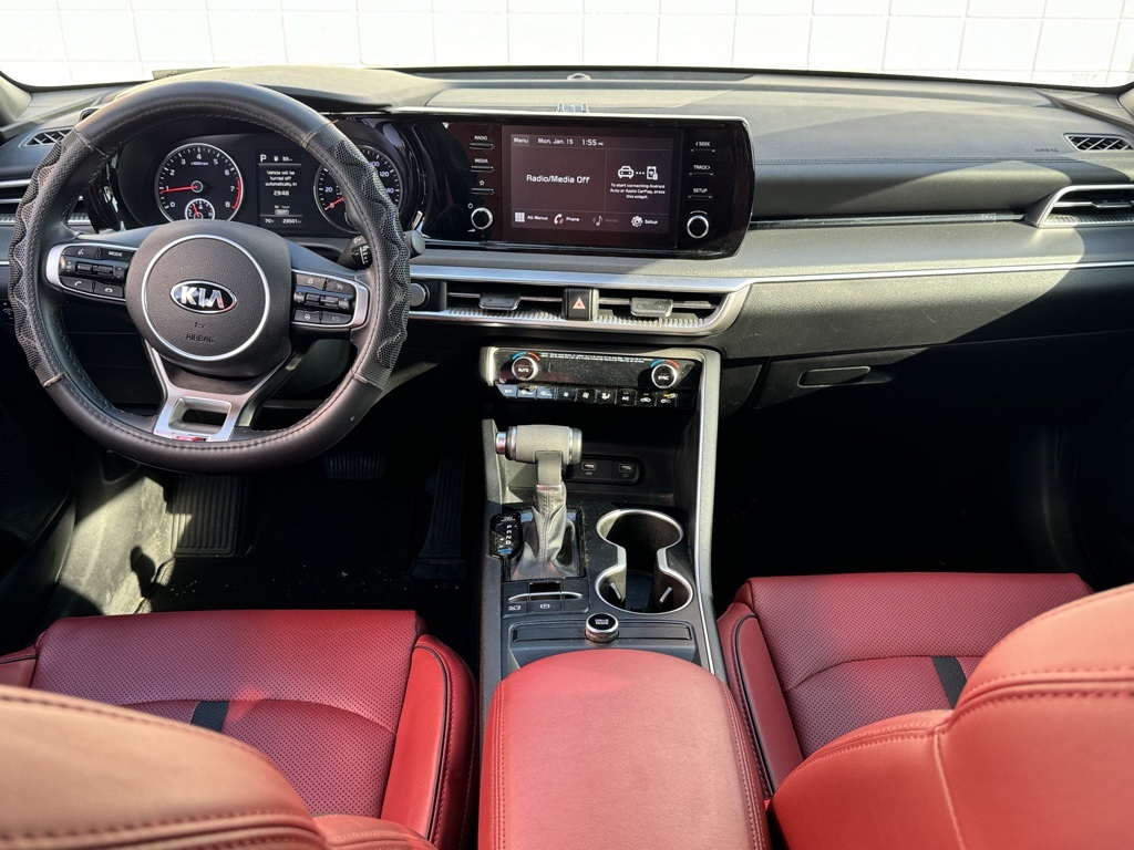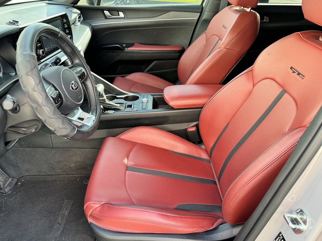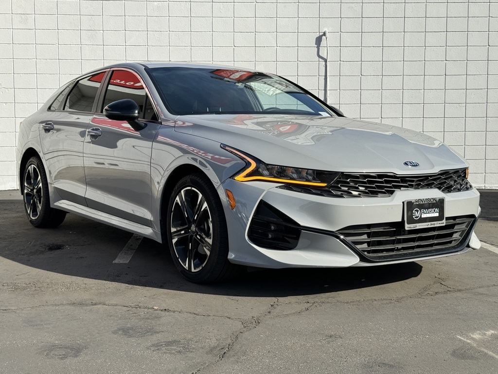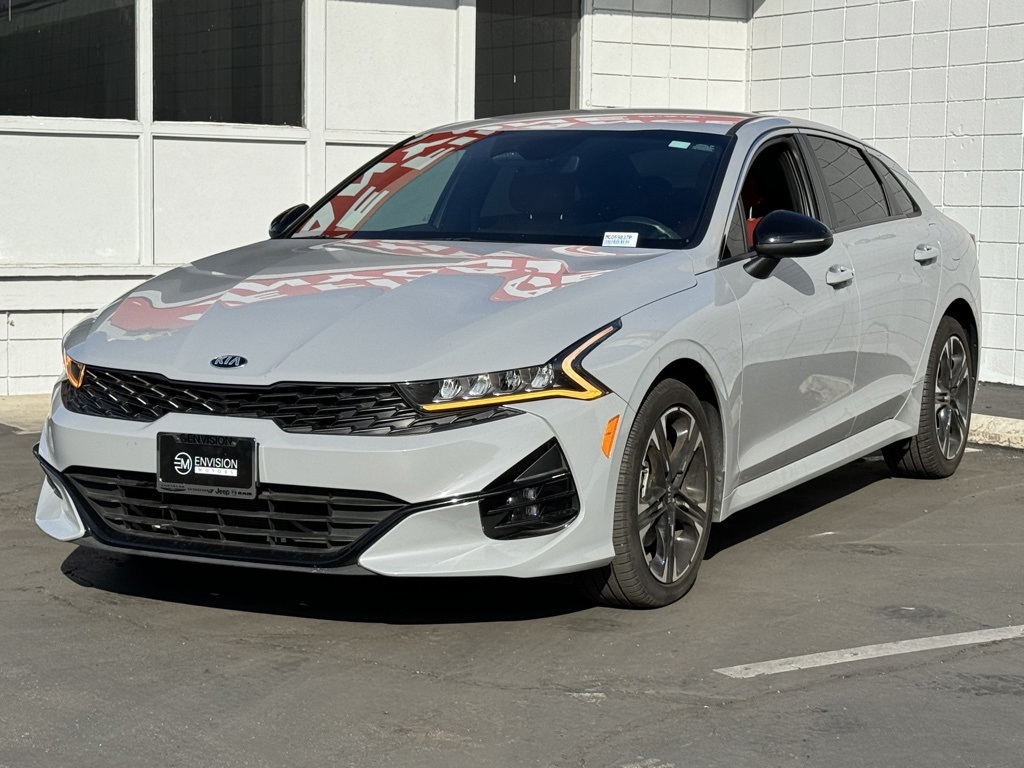 Recent Arrival! CARFAX One-Owner. Clean CARFAX.Odometer is 8974 miles below market average! 27/37 City/Highway MPG GT-Line Red Interior Package.Wolf Gray2021 Kia K5 GT-Line FWD 8-Speed Automatic 1.6L I4 DGI**********All Pricing and Advertised Prices for any/all vehicles offered for sale does not include dealer installed accessories which can be purchased for an additional cost.********** The Factory Rebates may not be available on this vehicle if you elect to take advantage of a Special Alternative APR or Special Lease program. Some Factory Rebates are California Resident specific and may vary for residents of other states. NO sales to Dealers, Brokers or Exporters. For out of state purchase, customers must be present to purchase. If shipping is required, dealership must facilitate; no exceptions. Please contact us for special Multi-Vehicle or Fleet pricing. Prices are plus government fees and taxes, any finance charges, $85 documentary fee, $29 electronic registration fee, any emission testing charge and $1.75 per new tire state tire fee. *** We make every effort to provide accurate information, but please verify before purchasing. Leasing & financing available on approved credit. Trade-ins accepted. Subject to prior sale.