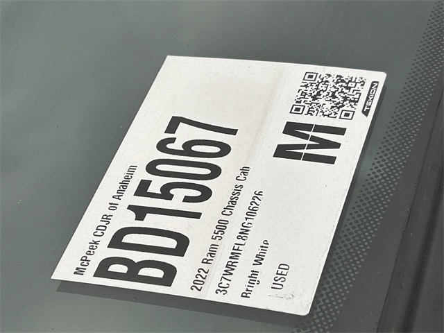 Clean CARFAX. CARFAX One-Owner. INTERIOR & EXTERIOR PROFESSIONALLY DETAILED FOR DELIVERY, MCPEEK CHRYSLER DODGE JEEP RAM FAMILY OWNED AND OPERATED SINCE 1961 !!!!!.Bright White Clearcoat 2022 Ram 5500HD Tradesman RWD Aisin 6-Speed AutomaticReceive Free lube and oil filter changes for up to 45,000 miles for 3 years!!! McPeek's Dodge of Anahiem 1221 S. Auto Center Drive Anahiem, CA 92806 714-262-4902.