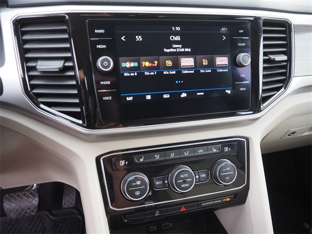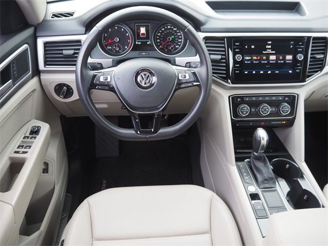 CARFAX One-Owner.Priced below KBB Fair Purchase Price!Odometer is 48595 miles below market average!2018 Volkswagen Atlas SEL FWD 8-Speed Automatic with Tiptronic 3.6L V6If you don't drive here, you can't save here!Awards: * 2018 KBB.com 10 Favorite New-for-2018 Cars * 2018 KBB.com Best Family CarsPrice may not include recon fee. 3.60 Axle Ratio, 3rd row seats: split-bench, 4-Wheel Disc Brakes, 8 Speakers, ABS brakes, Air Conditioning, Alloy wheels, AM/FM radio: SiriusXM, Auto-dimming Rear-View mirror, Automatic temperature control, Brake assist, Bumpers: body-color, Compass, Delay-off headlights, Driver door bin, Driver vanity mirror, Dual front impact airbags, Dual front side impact airbags, Electronic Stability Control, Emergency communication system: VW Car-Net, Exterior Parking Camera Rear, Four wheel independent suspension, Front anti-roll bar, Front Bucket Seats, Front Center Armrest, Front dual zone A/C, Front fog lights, Front reading lights, Garage door transmitter: HomeLink, Heated door mirrors, Heated Front Bucket Seats, Heated front seats, Illuminated entry, Low tire pressure warning, Memory seat, Occupant sensing airbag, Outside temperature display, Overhead airbag, Overhead console, Panic alarm, Passenger door bin, Passenger vanity mirror, Power door mirrors, Power driver seat, Power Liftgate, Power moonroof, Power passenger seat, Power steering, Power windows, Radio data system, Radio: Composition Media 8.0" Touchscreen w/CD, Rain sensing wipers, Rear air conditioning, Rear anti-roll bar, Rear reading lights, Rear seat center armrest, Rear window defroster, Rear window wiper, Remote CD player, Remote keyless entry, Roof rack: rails only, Security system, Speed control, Speed-sensing steering, Split folding rear seat, Spoiler, Standard Suspension, Steering wheel mounted audio controls, Tachometer, Telescoping steering wheel, Tilt steering wheel, Traction control, Trip computer, Turn signal indicator mirrors, Variably intermittent wipers, V-Tex Leatherette Seating Surfaces, and Wheels: 18" Prisma Alloy.