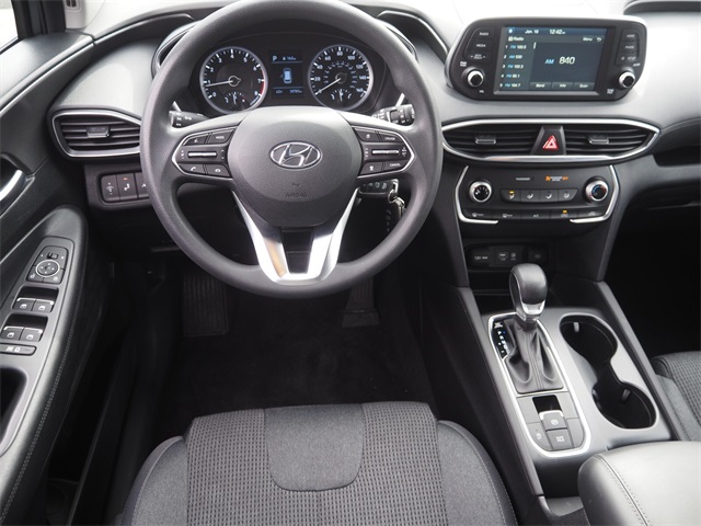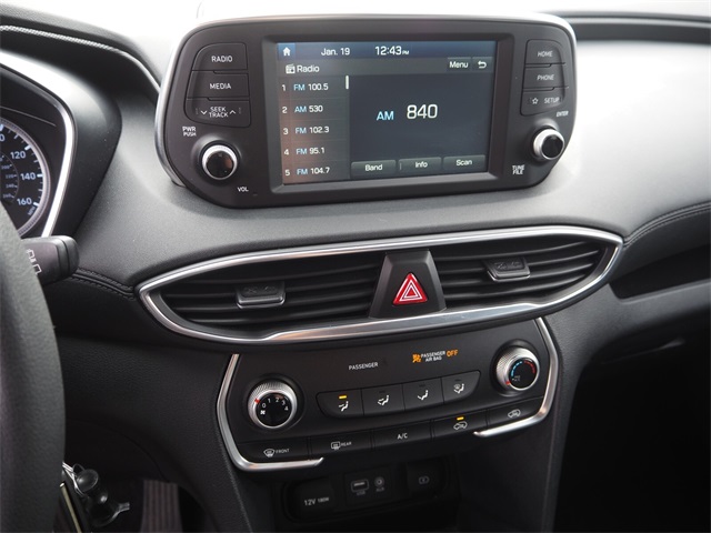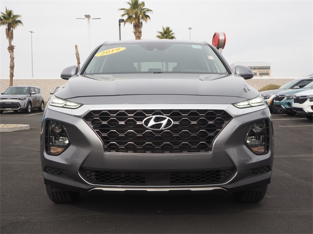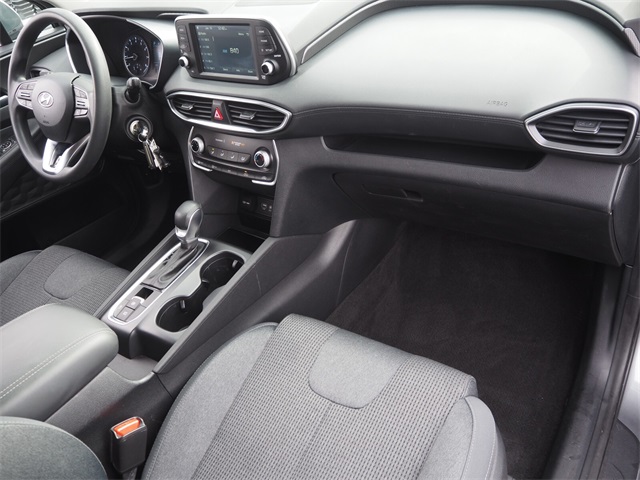Recent Arrival!CARFAX One-Owner.Odometer is 23716 miles below market average!22/29 City/Highway MPGMachine Gray 2019 Hyundai Santa Fe SE 2.4 FWD 8-Speed Automatic with SHIFTRONIC 2.4L I4 DGI DOHC 16V LEV3-ULEV70 185hp Black/Black Cloth.If you don't drive here, you can't save here!Awards: * JD Power Initial Quality Study (IQS) * JD Power Initial Quality Study (IQS), Vehicle Dependability Study (VDS)Price may not include recon fee. Black/Black Cloth, 17" x 7.0J Alloy Wheels, 4-Wheel Disc Brakes, 6 Speakers, ABS brakes, Air Conditioning, Alloy wheels, AM/FM radio, Apple CarPlay & Android Auto, Auto High-beam Headlights, Axle Ratio 3.798, Brake assist, Bumper Applique, Bumpers: body-color, Cargo Cover, Cargo Net, Cargo Tray, Carpeted Floor Mats, Delay-off headlights, Driver door bin, Driver vanity mirror, Dual front impact airbags, Dual front side impact airbags, Electronic Stability Control, Exterior Parking Camera Rear, Four wheel independent suspension, Front anti-roll bar, Front Bucket Seats, Front Center Armrest, Front reading lights, Fully automatic headlights, Illuminated entry, Low tire pressure warning, Occupant sensing airbag, Outside temperature display, Overhead airbag, Overhead console, Panic alarm, Passenger door bin, Passenger vanity mirror, Power door mirrors, Power steering, Power windows, Radio: AM/FM/MP3 Display Audio, Rear anti-roll bar, Rear seat center armrest, Rear window defroster, Rear window wiper, Remote keyless entry, Security system, Speed control, Speed-sensing steering, Split folding rear seat, Spoiler, Stain-Resistant Cloth Seating Surfaces, Steering wheel mounted audio controls, Tachometer, Telescoping steering wheel, Tilt steering wheel, Traction control, Trip computer, and Variably intermittent wipers.