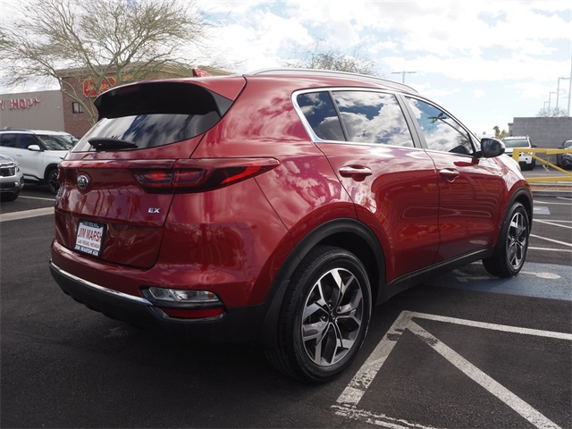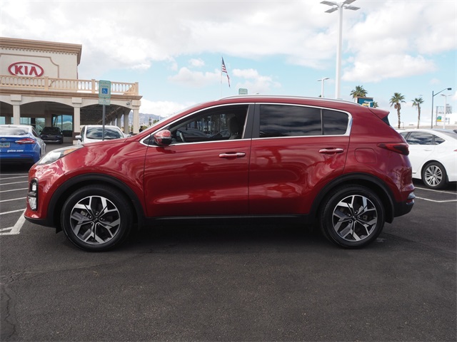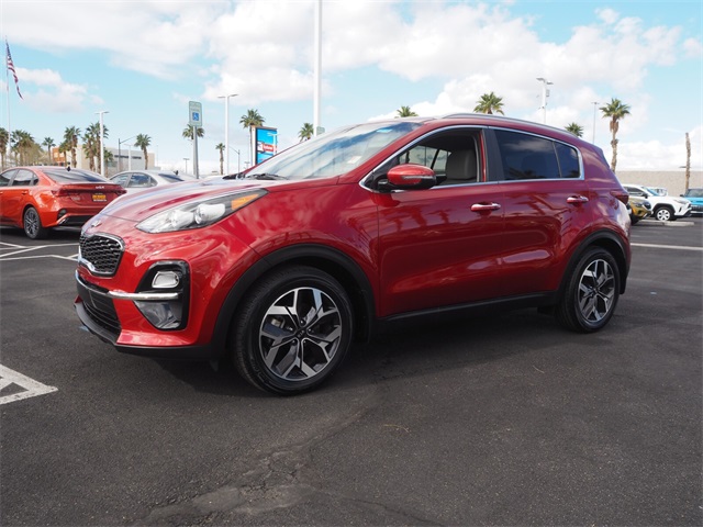 Priced below KBB Fair Purchase Price!23/30 City/Highway MPGHyper Red 2020 Kia Sportage EX FWD 6-Speed Automatic Electronic with Overdrive 2.4L I4 DGI DOHC 16VIf you don't drive here, you can't save here!Price may not include recon fee. Kia Certified Pre-Owned Certified, 18" Alloy Wheels, 4-Wheel Disc Brakes, 6 Speakers, ABS brakes, Air Conditioning, Alloy wheels, AM/FM radio, Apple CarPlay & Android Auto, Auto High-beam Headlights, Automatic temperature control, Axle Ratio: TBD, Brake assist, Bumpers: body-color, Cargo Cover, Carpet Floor Mats, Delay-off headlights, Driver door bin, Driver vanity mirror, Dual front impact airbags, Dual front side impact airbags, Electronic Stability Control, Exterior Parking Camera Rear, Four wheel independent suspension, Front anti-roll bar, Front Bucket Seats, Front Center Armrest, Front dual zone A/C, Front fog lights, Front reading lights, Fully automatic headlights, Heated door mirrors, Heated Front Bucket Seats, Heated front seats, Illuminated entry, Leather Shift Knob, Leatherette Seat Trim, Low tire pressure warning, Mud Guards, Occupant sensing airbag, Outside temperature display, Overhead airbag, Overhead console, Panic alarm, Passenger door bin, Passenger vanity mirror, Power door mirrors, Power driver seat, Power Liftgate, Power steering, Power windows, Radio: AM/FM/MP3, Rear anti-roll bar, Rear seat center armrest, Rear window defroster, Rear window wiper, Remote keyless entry, Roof rack: rails only, Security system, Speed control, Speed-sensing steering, Split folding rear seat, Spoiler, Steering wheel mounted audio controls, Tachometer, Telescoping steering wheel, Tilt steering wheel, Traction control, Trip computer, Turn signal indicator mirrors, and Variably intermittent wipers.