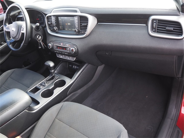 CARFAX One-Owner.Odometer is 20049 miles below market average!22/29 City/Highway MPGPassion Red 2020 Kia Sorento LX FWD 6-Speed Automatic with Sportmatic I4If you don't drive here, you can't save here!Price may not include recon fee. LX I4 Convenience Package (10-Way Power Adjustable Driver Seat, Auto-Dimming Rear-View Mirror, Dual Zone Automatic Climate Control, Heated Front Seats, Leather Wrapped Steering Wheel & Shift Knob, Park Distance Warning-Reverse, Radio: UVO eServices, and Roof Rails (Silver)), Kia Certified Pre-Owned Certified, 17" x 7.0" Alloy Wheels, 3.51 Axle Ratio, 3rd row seats: split-bench, 4-Wheel Disc Brakes, 6 Speakers, ABS brakes, Air Conditioning, Alloy wheels, AM/FM radio, Apple CarPlay & Android Auto, Brake assist, Bumpers: body-color, Delay-off headlights, Driver door bin, Driver vanity mirror, Dual front impact airbags, Dual front side impact airbags, Electronic Stability Control, Exterior Parking Camera Rear, Four wheel independent suspension, Front anti-roll bar, Front Bucket Seats, Front Center Armrest, Front reading lights, Fully automatic headlights, Heated door mirrors, Illuminated entry, Low tire pressure warning, Occupant sensing airbag, Outside temperature display, Overhead airbag, Overhead console, Panic alarm, Passenger door bin, Passenger vanity mirror, Power door mirrors, Power steering, Power windows, Radio data system, Radio: AM/FM/MP3 Audio System, Rear anti-roll bar, Rear seat center armrest, Rear window defroster, Rear window wiper, Remote keyless entry, Security system, Speed control, Speed-sensing steering, Split folding rear seat, Spoiler, Steering wheel mounted audio controls, Tachometer, Telescoping steering wheel, Tilt steering wheel, Traction control, Trip computer, Turn signal indicator mirrors, Variably intermittent wipers, and YES Essentials Cloth Seat Trim.