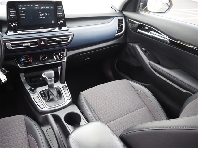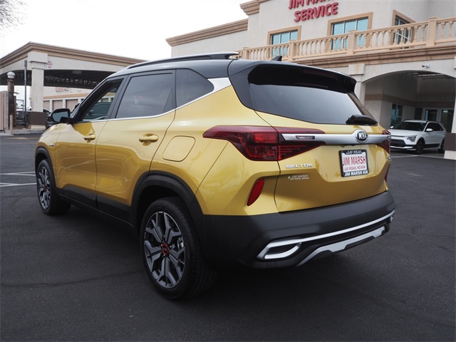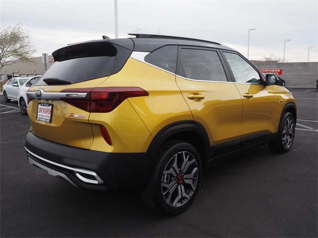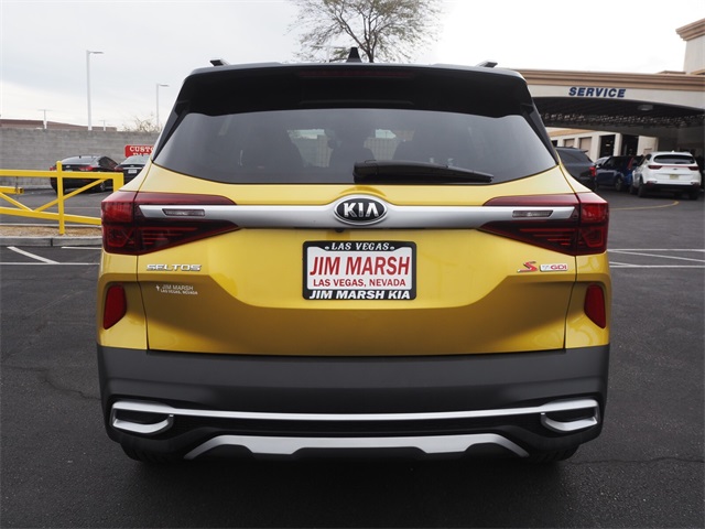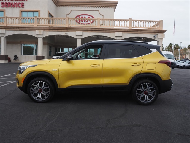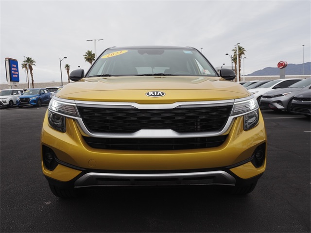 25/30 City/Highway MPGStarbright Yellow/Black Roof 2021 Kia Seltos S AWD 7-Speed Automatic I4If you don't drive here, you can't save here!Price may not include recon fee. Glossy Black Door Garnish Package (Glossy Black Door Garnishes), Kia Certified Pre-Owned Certified, 18" Alloy Wheels, 4-Wheel Disc Brakes, 4.643 Axle Ratio, 6 Speakers, ABS brakes, Air Conditioning, Alloy wheels, AM/FM radio, Apple CarPlay & Android Auto, Brake assist, Bumpers: body-color, Carpeted Floor Mats, Delay-off headlights, Driver door bin, Driver vanity mirror, Dual front impact airbags, Dual front side impact airbags, Electronic Stability Control, Exterior Parking Camera Rear, Four wheel independent suspension, Front anti-roll bar, Front Bucket Seats, Front Center Armrest, Front fog lights, Front reading lights, Fully automatic headlights, Heated door mirrors, Heated Front Bucket Seats, Heated front seats, Illuminated entry, Leather Shift Knob, Low tire pressure warning, Occupant sensing airbag, Outside temperature display, Overhead airbag, Overhead console, Panic alarm, Passenger door bin, Passenger vanity mirror, Power door mirrors, Power steering, Power windows, Radio: AM/FM/MP3 Display Audio, Rear seat center armrest, Rear window defroster, Rear window wiper, Remote keyless entry, Roof rack: rails only, Security system, Sofino Premium Leatherette Seat Trim, Speed control, Speed-sensing steering, Split folding rear seat, Spoiler, Steering wheel mounted audio controls, Tachometer, Telescoping steering wheel, Tilt steering wheel, Traction control, Trip computer, Turn signal indicator mirrors, and Variably intermittent wipers.