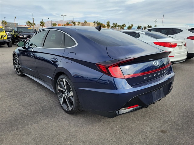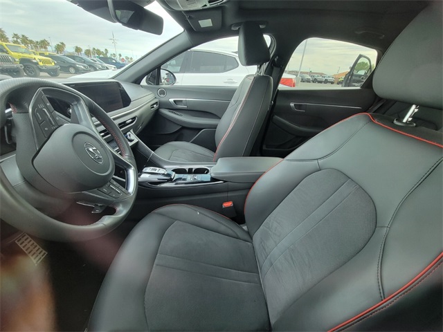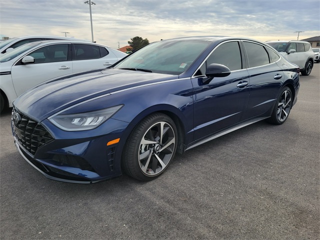 Recent Arrival!CARFAX One-Owner.Priced below KBB Fair Purchase Price!Odometer is 15617 miles below market average!27/37 City/Highway MPGStormy Sea 2021 Hyundai Sonata SEL Plus FWD 8-Speed Automatic with Overdrive I4 Black Artificial Leather.If you don't drive here, you can't save here!Awards: * ALG Residual Value Awards, Residual Value AwardsPrice may not include recon fee. Tech Package (Bose Premium Audio, Highway Drive Assist (HDA), LED Interior Lights, Option Group 05, Panoramic Sunroof, and Radio: AM/FM/HD/SiriusXM Display Audio w/Nav), Black Artificial Leather, 4-Wheel Disc Brakes, 6 Speakers, ABS brakes, Air Conditioning, Alloy wheels, AM/FM radio: SiriusXM, Apple CarPlay & Android Auto, Auto High-beam Headlights, Auto-dimming Rear-View mirror, Automatic temperature control, Brake assist, Bumpers: body-color, Cargo Net, Carpeted Floor Mats, Delay-off headlights, Dinamica Suede/Leatherette Seating Surfaces, Driver door bin, Driver vanity mirror, Dual front impact airbags, Dual front side impact airbags, Electronic Stability Control, Emergency communication system: Blue Link Connected Car Service (3-year complimentary subscription), Exterior Parking Camera Rear, First Aid Kit, Four wheel independent suspension, Front anti-roll bar, Front Bucket Seats, Front Center Armrest, Front dual zone A/C, Front reading lights, Fully automatic headlights, Garage door transmitter: HomeLink, Heated door mirrors, Heated Front Bucket Seats, Heated front seats, Illuminated entry, Knee airbag, Low tire pressure warning, Mud Guards, Occupant sensing airbag, Outside temperature display, Overhead airbag, Overhead console, Panic alarm, Passenger door bin, Passenger vanity mirror, Power door mirrors, Power driver seat, Power steering, Power windows, Radio data system, Radio: AM/FM/MP3/HD/SiriusXM Display Audio, Rear anti-roll bar, Rear Bumper Applique, Rear seat center armrest, Rear side impact airbag, Rear window defroster, Remote keyless entry, Reversible Cargo Tray, Security system, Speed control, Speed-sensing steering, Speed-Sensitive Wipers, Split folding rear seat, Steering wheel mounted audio controls, Tachometer, Telescoping steering wheel, Tilt steering wheel, Traction control, Trip computer, Turn signal indicator mirrors, Variably intermittent wipers, Wheel Locks, Wheels: 19 x 8.0J Aluminum Alloy, and Wireless Device Charging.