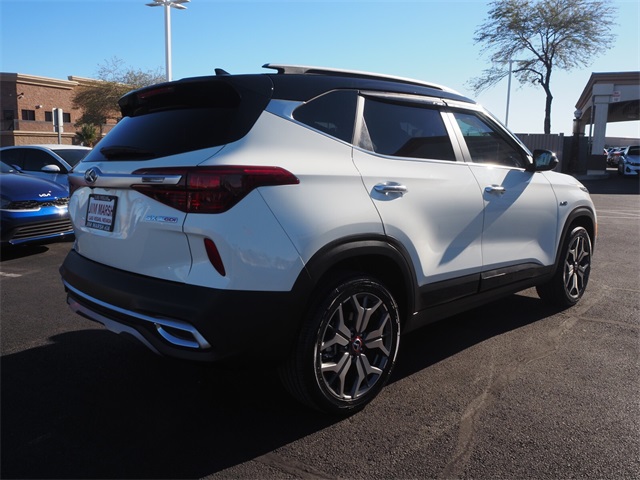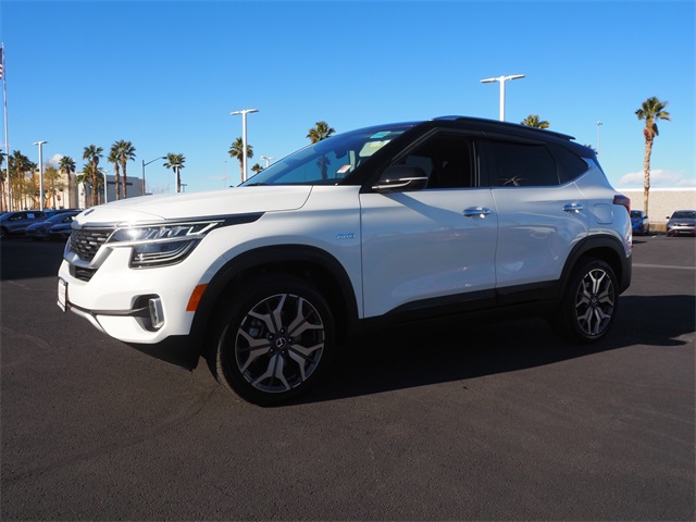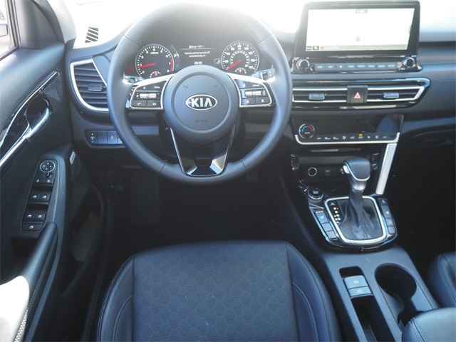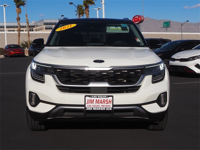 CARFAX One-Owner.Priced below KBB Fair Purchase Price!25/30 City/Highway MPGClear White/Black Roof 2021 Kia Seltos SX AWD 7-Speed Automatic I4If you don't drive here, you can't save here!Price may not include recon fee. Kia Certified Pre-Owned Certified, 18" Alloy Wheels, 4.643 Axle Ratio, 4-Wheel Disc Brakes, 8 Speakers, ABS brakes, Air Conditioning, Alloy wheels, AM/FM radio: SiriusXM, Apple CarPlay & Android Auto, Auto-dimming Rear-View mirror, Automatic temperature control, Brake assist, Bumpers: body-color, Cargo Mat, Carpeted Floor Mats, Delay-off headlights, Driver door bin, Driver vanity mirror, Dual front impact airbags, Dual front side impact airbags, Electronic Stability Control, Emergency communication system, Exterior Parking Camera Rear, Four wheel independent suspension, Front anti-roll bar, Front Bucket Seats, Front Center Armrest, Front fog lights, Front reading lights, Fully automatic headlights, Heated door mirrors, Heated Front Bucket Seats, Heated front seats, Illuminated entry, Leather Seat Trim, Leather Shift Knob, Low tire pressure warning, Navigation System, Occupant sensing airbag, Outside temperature display, Overhead airbag, Overhead console, Panic alarm, Passenger door bin, Passenger vanity mirror, Power door mirrors, Power driver seat, Power steering, Power windows, Radio: AM/FM/MP3 Display Audio, Rear seat center armrest, Rear window defroster, Rear window wiper, Remote keyless entry, Roof rack: rails only, Security system, Speed control, Speed-sensing steering, Split folding rear seat, Spoiler, Steering wheel mounted audio controls, Tachometer, Telescoping steering wheel, Tilt steering wheel, Traction control, Trip computer, Turn signal indicator mirrors, and Variably intermittent wipers.