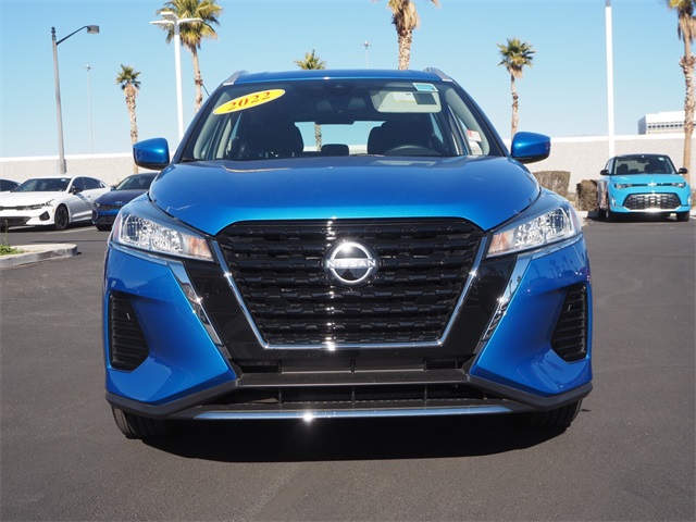 CARFAX One-Owner.Priced below KBB Fair Purchase Price!Odometer is 20870 miles below market average!31/36 City/Highway MPGElectric Blue Metallic 2022 Nissan Kicks SV FWD CVT with Xtronic 1.6L 4-Cylinder DOHC 16VIf you don't drive here, you can't save here!Price may not include recon fee. 3.927 Axle Ratio, 4-Wheel Disc Brakes, 6 Speakers, ABS brakes, Air Conditioning, Alloy wheels, AM/FM radio: SiriusXM, Apple CarPlay/Android Auto, Auto High-beam Headlights, Automatic temperature control, Blind Spot Warning, Brake assist, Bumpers: body-color, Carpeted Floor Mats w/Cargo Mat, Cloth Seat Trim, Compass, Driver door bin, Driver vanity mirror, Dual front impact airbags, Dual front side impact airbags, Electronic Stability Control, Front anti-roll bar, Front Bucket Seats, Front Center Armrest, Front reading lights, Front wheel independent suspension, Fully automatic headlights, Heated door mirrors, Illuminated entry, Knee airbag, Low tire pressure warning, Occupant sensing airbag, Outside temperature display, Overhead airbag, Panic alarm, Passenger door bin, Passenger vanity mirror, Power door mirrors, Power steering, Power windows, Radio data system, Radio: AM/FM Audio System, Rear Parking Sensors, Rear reading lights, Rear side impact airbag, Rear window defroster, Rear window wiper, Remote keyless entry, Roof rack: rails only, Speed control, Splash Guards Grain (4 Piece), Split folding rear seat, Sport steering wheel, Steering wheel mounted audio controls, Tachometer, Telescoping steering wheel, Tilt steering wheel, Traction control, Trip computer, Variably intermittent wipers, and Wheels: 17" 5-Hole Alloy.