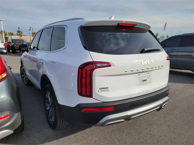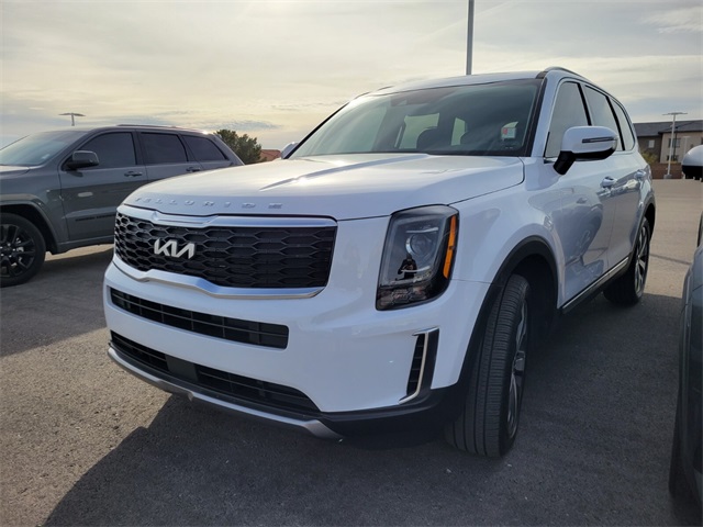 Recent Arrival!CARFAX One-Owner.Odometer is 11900 miles below market average!Glacial White Pearl 2022 Kia Telluride S AWD 8-Speed Automatic 3.8L V6 DOHCIf you don't drive here, you can't save here!Price may not include recon fee. Kia Certified Pre-Owned Certified, 20" x 7.5" Machined Alloy Wheels, 3.648 Axle Ratio, 3rd row seats: split-bench, 4-Wheel Disc Brakes, 6 Speakers, ABS brakes, Air Conditioning, Alloy wheels, AM/FM radio: SiriusXM, Apple CarPlay & Android Auto, Automatic temperature control, Brake assist, Bumpers: body-color, Carpeted Floor Mats, Delay-off headlights, Driver door bin, Driver vanity mirror, Dual front impact airbags, Dual front side impact airbags, Electronic Stability Control, Emergency communication system: 911 Connect, Four wheel independent suspension, Front anti-roll bar, Front Bucket Seats, Front Center Armrest, Front dual zone A/C, Front reading lights, Fully automatic headlights, Heated door mirrors, Heated Front Bucket Seats, Heated front seats, Illuminated entry, Knee airbag, Leather Shift Knob, Leather steering wheel, Low tire pressure warning, Navigation System, Occupant sensing airbag, Outside temperature display, Overhead airbag, Overhead console, Panic alarm, Passenger door bin, Passenger vanity mirror, Power door mirrors, Power driver seat, Power moonroof, Power steering, Power windows, Radio data system, Radio: AM/FM Display Audio System, Rear air conditioning, Rear anti-roll bar, Rear audio controls, Rear reading lights, Rear window defroster, Rear window wiper, Reclining 3rd row seat, Remote keyless entry, Roof rack: rails only, Security system, Speed control, Speed-sensing steering, Split folding rear seat, Spoiler, Steering wheel mounted audio controls, Synthetic Leather Seat Trim, Tachometer, Telescoping steering wheel, Tilt steering wheel, Traction control, Trip computer, Turn signal indicator mirrors, and Variably intermittent wipers.