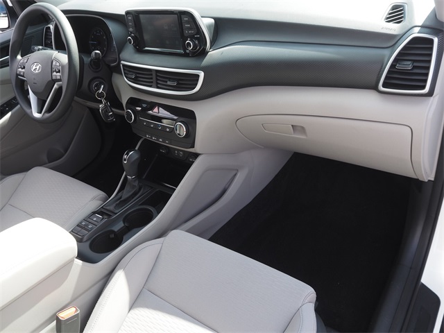 Priced below KBB Fair Purchase Price!Odometer is 9103 miles below market average!23/28 City/Highway MPGCream White Pearl 2020 Hyundai Tucson SE FWD 6-Speed Automatic with Shiftronic I4If you don't drive here, you can't save here!Price may not include recon fee. Option Group 01, 17" x 7.0J Alloy Wheels, 4-Wheel Disc Brakes, 6 Speakers, ABS brakes, Air Conditioning, Alloy wheels, AM/FM radio, Apple CarPlay & Android Auto, Axle Ratio: 3.51, Brake assist, Bumpers: body-color, Cargo Cover, Carpeted Floor Mats, Delay-off headlights, Driver door bin, Driver vanity mirror, Dual front impact airbags, Dual front side impact airbags, Electronic Stability Control, Exterior Parking Camera Rear, First Aid Kit, Four wheel independent suspension, Front anti-roll bar, Front Bucket Seats, Front Center Armrest, Front reading lights, Fully automatic headlights, Illuminated entry, Low tire pressure warning, Occupant sensing airbag, Outside temperature display, Overhead airbag, Overhead console, Panic alarm, Passenger door bin, Passenger vanity mirror, Power door mirrors, Power steering, Power windows, Radio: AM/FM Audio System, Rear anti-roll bar, Rear Bumper Applique, Rear seat center armrest, Rear window defroster, Rear window wiper, Remote keyless entry, Security system, Speed control, Speed-sensing steering, Split folding rear seat, Spoiler, Steering wheel mounted audio controls, Tachometer, Telescoping steering wheel, Tilt steering wheel, Traction control, Trip computer, Variably intermittent wipers, Wheel Locks, and YES Essentials Stain-Resistant Cloth Seat Trim.