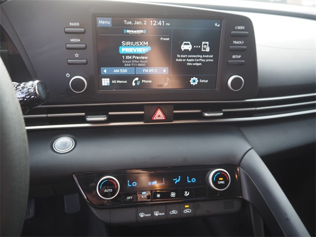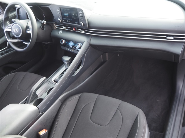 31/41 City/Highway MPGPhantom Black 2022 Hyundai Elantra SEL FWD IVT 2.0L 4-Cylinder DOHC 16VIf you don't drive here, you can't save here!Price may not include recon fee. Option Group 01, 16" x 6.5J Alloy Wheels, 4-Wheel Disc Brakes, 6 Speakers, ABS brakes, Air Conditioning, Alloy wheels, AM/FM radio: SiriusXM, Apple CarPlay & Android Auto, Auto High-beam Headlights, Automatic temperature control, Brake assist, Bumpers: body-color, Carpeted Floor Mats, Cloth Seat Trim, Delay-off headlights, Driver door bin, Driver vanity mirror, Dual front impact airbags, Dual front side impact airbags, Electronic Stability Control, Emergency communication system: Blue Link Connected Car Service (3-year complimentary subscription), Exterior Parking Camera Rear, First Aid Kit, Front anti-roll bar, Front Bucket Seats, Front Center Armrest, Front dual zone A/C, Front reading lights, Front wheel independent suspension, Fully automatic headlights, Illuminated entry, Low tire pressure warning, Mudguards, Occupant sensing airbag, Outside temperature display, Overhead airbag, Panic alarm, Passenger door bin, Passenger vanity mirror, Power door mirrors, Power steering, Power windows, Radio: AM/FM/HD/SiriusXM Display Audio, Rear Bumper Applique, Rear window defroster, Remote keyless entry, Security system, Speed control, Speed-sensing steering, Steering wheel mounted audio controls, Tachometer, Telescoping steering wheel, Tilt steering wheel, Traction control, Trip computer, and Variably intermittent wipers.