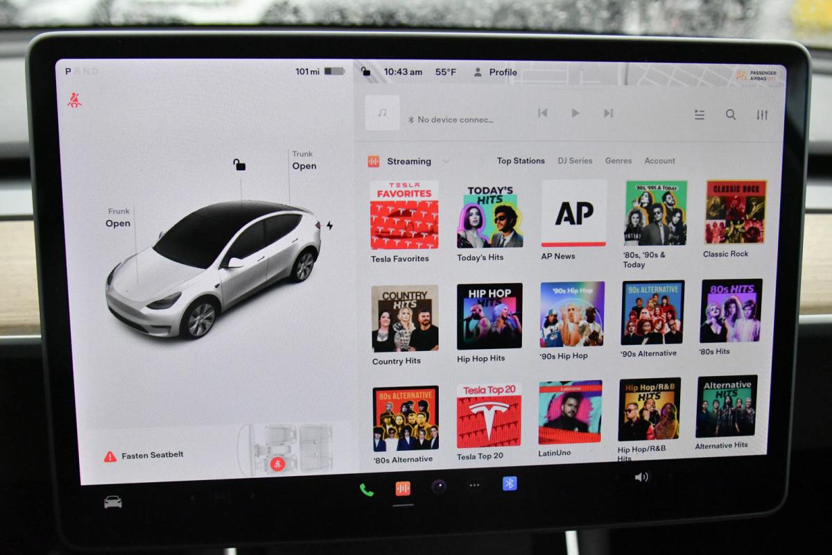 This Tesla Model Y boasts a Electric engine powering this Automatic transmission. Window Grid Antenna, Wheels: 19 x 9.5 Gemini, Valet Function.*This Tesla Model Y Comes Equipped with These Options *Trip Computer, Transmission: 1-Speed Automatic, Tracker System, Towing Equipment -inc: Trailer Sway Control, Tires: 255/45R19, Tire Specific Low Tire Pressure Warning, Tailgate/Rear Door Lock Included w/Power Door Locks, Smart Device Integration, Simulated Suede Door Trim Insert, Side Impact Beams.
