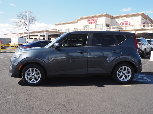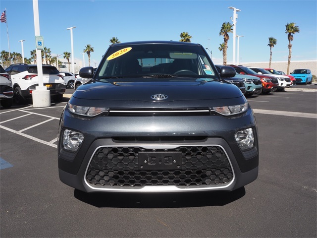 29/35 City/Highway MPGGravity Gray 2020 Kia Soul S FWD IVT 2.0L I4 MPI DOHC 16V LEV3-SULEV30 147hpIf you don't drive here, you can't save here!Awards: * 2020 KBB.com 10 Coolest New Cars Under $20,000 * 2020 KBB.com 10 Favorite New-for-2020 CarsPrice may not include recon fee. Kia Certified Pre-Owned Certified, 4-Wheel Disc Brakes, 6 Speakers, 6-Way Adjustable Driver's Seat, ABS brakes, Air Conditioning, Alloy wheels, AM/FM radio, Apple CarPlay & Android Auto, Brake assist, Bumpers: body-color, Carpeted Floor Mats, Delay-off headlights, Driver door bin, Driver vanity mirror, Dual front impact airbags, Dual front side impact airbags, Electronic Stability Control, Exterior Parking Camera Rear, Front anti-roll bar, Front Bucket Seats, Front Center Armrest, Front reading lights, Front wheel independent suspension, Fully automatic headlights, Low tire pressure warning, Occupant sensing airbag, Outside temperature display, Overhead airbag, Overhead console, Passenger door bin, Passenger vanity mirror, Power door mirrors, Power steering, Power windows, Radio: AM/FM/MP3 Audio System, Rear window defroster, Rear window wiper, Remote keyless entry, Speed control, Speed-sensing steering, Split folding rear seat, Steering wheel mounted audio controls, Tachometer, Telescoping steering wheel, Tilt steering wheel, Traction control, Trip computer, Variably intermittent wipers, Wheels: 16" x 6.5 Alloy, and Woven Cloth Seat Trim.