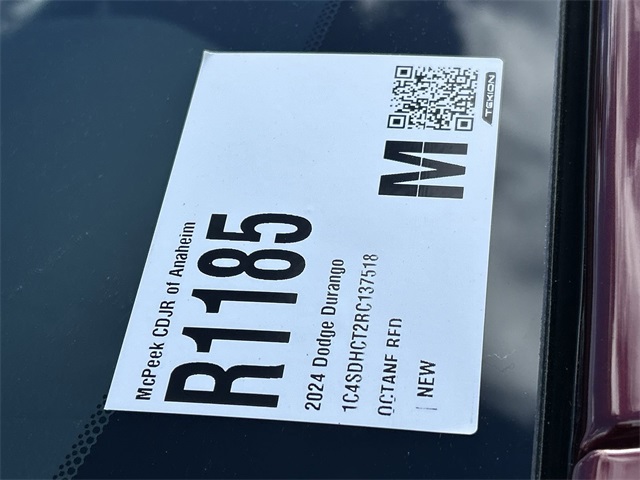 Octane Red Pearlcoat 2024 Dodge Durango R/T RWD 8-Speed Automatic HEMI 5.7L V8 Multi Displacement VVT INTERIOR & EXTERIOR PROFESSIONALLY DETAILED FOR DELIVERY, MCPEEK CHRYSLER DODGE JEEP RAM FAMILY OWNED AND OPERATED SINCE 1961 !!!!!.All prices are subject to change without notice. All vehicles subject to prior sale. Advertised price does not include Dealer Installed Accessories or Commercial Bed/Body Upfits. Please contact dealer to receive the most up to date pricing information and complete details.Receive Free lube and oil filter changes for up to 45,000 miles for 3 years!!! McPeek's Dodge of Anahiem 1221 S. Auto Center Drive Anahiem, CA 92806 714-262-4902.