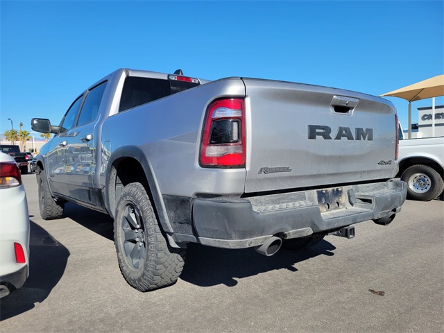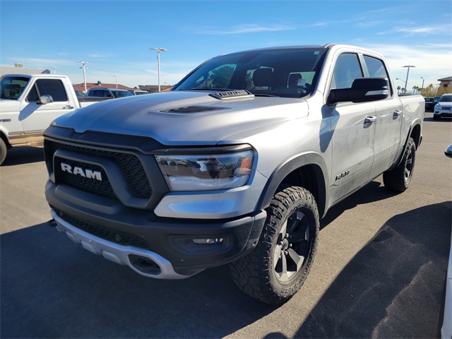 Recent Arrival!Billet Silver Metallic Clearcoat 2020 Ram 1500 Rebel 4WD 8-Speed Automatic HEMI 5.7L V8 Multi Displacement VVTIf you don't drive here, you can't save here!Awards: * JD Power Automotive Performance, Execution and Layout (APEAL) StudyPrice may not include recon fee. Quick Order Package 25W Rebel (Body Color Door Handles), Rebel Level 2 Equipment Group (ParkSense Front/Rear Park Assist w/Stop), 3.92 Rear Axle Ratio, 4 Way Front Headrests, 48V Belt Starter Generator, 4-Wheel Disc Brakes, 6 Speakers, 9 Amplified Speakers w/Subwoofer, ABS brakes, Air Conditioning, Alloy wheels, AM/FM radio: SiriusXM, Blind Spot & Cross Path Detection, Brake assist, Bucket Seats, Cloth/Vinyl Low Back Bucket Seats, Compass, Delay-off headlights, Driver door bin, Dual front impact airbags, Dual front side impact airbags, Electronic Stability Control, Front anti-roll bar, Front Bucket Seats, Front Center Armrest w/Storage, Front fog lights, Front reading lights, Front Seat Back Map Pockets, Front wheel independent suspension, Full Length Upgraded Floor Console, Fully automatic headlights, GPS Antenna Input, HD Radio, Heated door mirrors, Illuminated entry, Leather steering wheel, Low tire pressure warning, Manufacturer's Statement of Origin, Occupant sensing airbag, Outside temperature display, Overhead airbag, Overhead console, Panic alarm, ParkView Rear Back-Up Camera, Passenger door bin, Passenger vanity mirror, Power 4-Way Driver Lumbar Adjust, Power door mirrors, Power driver seat, Power steering, Power windows, Radio data system, Radio: Uconnect 12 w/Navigation, Radio: Uconnect 3 w/5" Display, Rear 60/40 Folding Seat, Rear anti-roll bar, Rear seat center armrest, Rear step bumper, Remote keyless entry, Remote Start System, SiriusXM Satellite Radio, SiriusXM w/360L, Speed control, Split folding rear seat, Steering wheel mounted audio controls, Tachometer, Telescoping steering wheel, Tilt steering wheel, Traction control, Trailer Brake Control, Trip computer, Variably intermittent wipers, Voltmeter, and Wheels: 18" x 8" Painted Black.