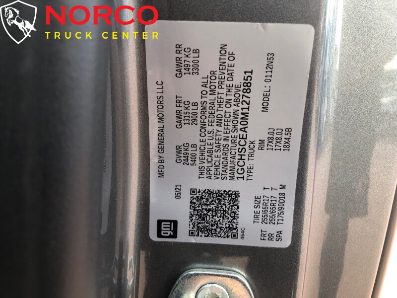 -- INSTALLED FEATURES: Air filtration, Front air conditioning, Front air conditioning zones: single, Airbag deactivation: occupant sensing passenger, Front airbags: dual, Side airbags: front, Side curtain airbags: front / rear, Antenna type: diversity / mast, Auxiliary audio input: Bluetooth / USB / iPod/iPhone / jack, Radio: AM/FM / touch screen display, Radio data system, Satellite radio: SiriusXM, Speed sensitive volume control, Total speakers: 6, ABS: 4-wheel, Braking assist, Electronic brakeforce distribution, Front brake diameter: 12.2, Front brake type: ventilated disc, Front brake width: 1.06, Power brakes, Rear brake diameter: 12.8, Rear brake type: ventilated disc, Rear brake width: 0.71, Floor mat material: carpet, Floor material: carpet, Floor mats: front / rear, Interior accents: chrome, Shift knob trim: urethane, Steering wheel trim: leather, Assist handle: front / rear, Capless fuel filler system, Center console: front console with armrest and storage, Cruise control, Cupholders: front / rear, Multi-function remote: keyless entry / panic alarm, One-touch windows: 1, Overhead console: front, Power outlet(s): 12V front, Power steering: variable/speed-proportional, Reading lights: front, Rearview mirror: auto-dimming, Steering wheel: tilt and telescopic, Steering wheel mounted controls: audio / cruise control / multi-function / phone / voice control, Storage: door pockets / in dash / sunglasses holder / under rear seats, Vanity mirrors: dual illuminating, Axle ratio: 4.10, Battery: maintenance-free, Battery saver, Bumper detail: rear step, Door handle color: body-color, Front bumper color: body-color, Grille color: black with chrome accents, Mirror color: body-color, Pickup bed light, Rear bumper color: body-color, Side door type: dual rear-hinged access, Tailgate: lift assist / power locking, Window trim: chrome, Connected in-car apps: app marketplace integration, Infotainment: Chevrolet Infotainment System, Infotainment screen size: 8 in., Smartphone integration: Android Auto / Apple CarPlay, Clock, Digital odometer, External temperature display, Fuel economy display: MPG / range, Gauge: oil pressure / tachometer, Instrument cluster screen size: 4.2 in., Multi-function display, Trip odometer, Warnings and reminders: low fuel level / low oil level / maintenance due, Daytime running lights, Headlights: auto delay off / auto on/off / halogen, Side mirror adjustments: manual folding / power, Camera system: rearview, Check rear seat reminder, Child seat anchors: LATCH system, Programmable safety key, Rearview monitor: in dash, Emergency locking retractors: front, Front seatbelts: 3-point, Rear seatbelts: 3-point, Seatbelt force limiters: front, Seatbelt pretensioners: front, Seatbelt warning sensor: front, Driver seat manual adjustments: reclining, Driver seat power adjustments: height / 6, Front headrests: adjustable / 2, Front seat type: bucket, Passenger seat manual adjustments: reclining / 2, Rear headrests: fixed / 2, Rear seat type: jumpseats, Upholstery: cloth, Anti-theft system: alarm / vehicle immobilizer, Power door locks: anti-lockout / auto-locking, Hill holder control, Stability control, Traction control, Trailer stability control, Steering ratio: 16.8, Turns lock-to-lock: 3.3, Front shock type: twin-tube gas, Front spring type: coil, Front stabilizer bar, Front struts, Front suspension classification: independent, Front suspension type: upper and lower control arms, Rear shock type: twin-tube gas, Rear spring type: leaf, Rear suspension classification: solid live axle, Rear suspension type: multi-leaf, Driver assistance app: roadside assistance, Electronic messaging assistance: voice operated / with read function, Phone: voice operated, Satellite communications: OnStar / voice guided directions, Smart device app compatibility: myChevrolet with Connected Access, Smart device app function: maintenance status / vehicle location, Wi-Fi: hotspot, Wireless data link: Bluetooth, Spare tire mount location: underbody, Spare tire size: temporary, Spare wheel type: aluminum, Tire Pressure Monitoring System, Tire type: all season, Wheels: aluminum alloy, Front wipers: variable intermittent, Power windows: safety reverse
