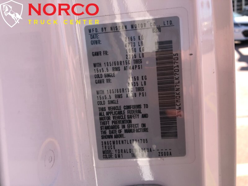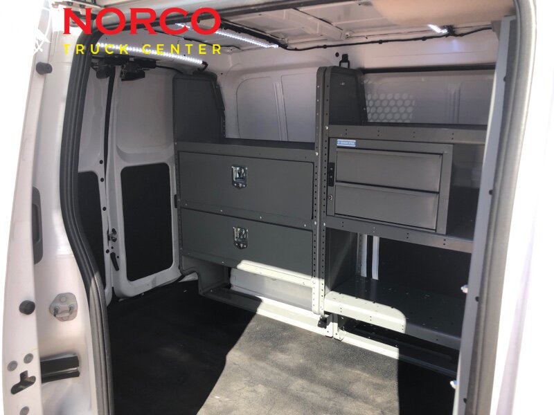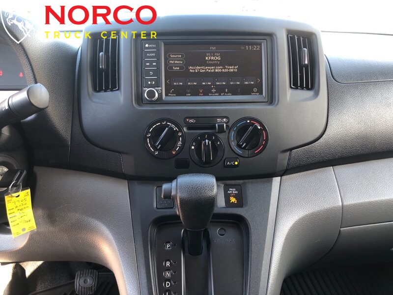-- INSTALLED FEATURES: Front air conditioning, Front air conditioning zones: single, Airbag deactivation: occupant sensing passenger, Front airbags: dual, Side airbags: front, Side curtain airbags: front, Antenna type: diversity / mast, Auxiliary audio input: Bluetooth / USB / iPod/iPhone / jack, In-Dash CD: single disc, Radio: AM/FM / voice operated, Radio data system, Satellite radio: SiriusXM, Total speakers: 2, ABS: 4-wheel, Braking assist, Electronic brakeforce distribution, Front brake diameter: 11.1, Front brake type: ventilated disc, Front brake width: 1.1, Power brakes, Rear brake diameter: 9.0, Rear brake type: drum, Floor material: cargo area rubber/vinyl / rubber/vinyl, Shift knob trim: urethane, Steering wheel trim: urethane, Cargo area light, Center console: front console with storage, Cupholders: front / 2, One-touch windows: 2, Power outlet(s): 12V front, Power steering, Power windows: lockout button, Reading lights: front, Rearview mirror: manual day/night, Steering wheel mounted controls: audio / phone / voice control, Storage: cargo tie-down anchors and hooks / door pockets / in dash / under front seats, Sun visors, Axle ratio: 5.41, Alternator: 150 amps, Battery: heavy duty / maintenance-free, Battery saver, Emissions: 50 state, Door handle color: black, Front bumper color: body-color, Grille color: silver, Mirror color: black, Rear bumper color: black, Rear trunk/liftgate: barn, Side door type: dual manual sliding, Window trim: black, Infotainment: NissanConnect, Infotainment screen size: 7 in., Smartphone integration: Android Auto / Apple CarPlay, Clock, Digital odometer, External temperature display, Fuel economy display: MPG / range, Gauge: tachometer, Trip odometer, Warnings and reminders: coolant temperature warning / lamp failure / low battery / low fuel level / low oil pressure / low washer fluid, Daytime running lights, Headlights: auto delay off / halogen, Side mirror adjustments: manual / manual folding, OEM roof height: undefined, Active head restraints: dual front, Camera system: rearview, Crumple zones: front / rear, Rearview monitor: in dash, Safety brake pedal system, Emergency locking retractors: front, Front seatbelts: 3-point, Seatbelt force limiters: front, Seatbelt pretensioners: front, Seatbelt warning sensor: front, Driver seat manual adjustments: height / reclining / 6, Front headrests: adjustable / 2, Front seat type: bucket, Passenger seat folding: folds flat, Passenger seat manual adjustments: reclining / 4, Upholstery: cloth, Anti-theft system: alarm / vehicle immobilizer, Power door locks: anti-lockout / auto-locking, Hill holder control, Stability control, Traction control, Steering ratio: 18.3, Turns lock-to-lock: 3.3, Front shock type: twin-tube gas, Front spring type: coil, Front stabilizer bar, Front struts: MacPherson, Front suspension classification: independent, Front suspension type: lower control arms, Rear shock type: twin-tube gas, Rear spring type: leaf, Rear suspension classification: solid axle, Rear suspension type: multi-leaf, Electronic messaging assistance: with read function, Phone: hands free, Wireless data link: Bluetooth, Spare tire mount location: underbody, Spare tire size: full-size matching, Spare wheel type: steel, Tire Pressure Monitoring System, Tire type: all season, Wheels: steel, Front wipers: variable intermittent, Power windows: safety reverse