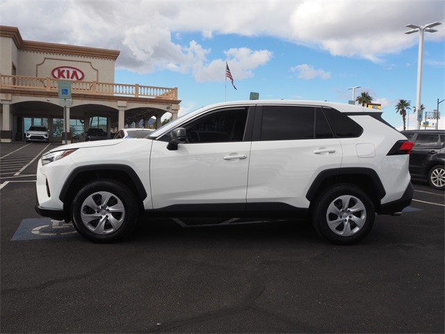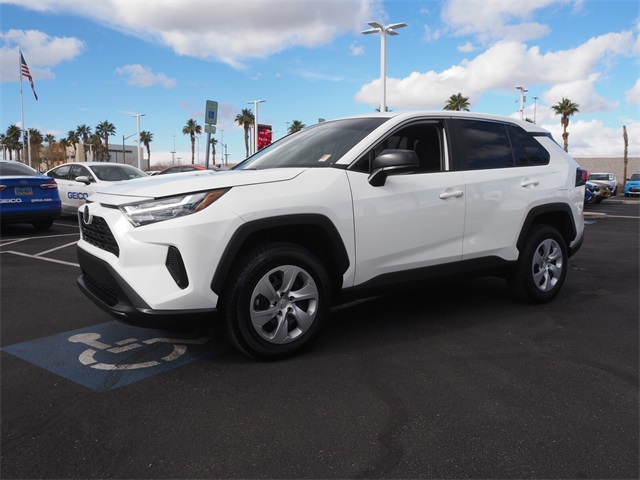 Recent Arrival!CARFAX One-Owner.Priced below KBB Fair Purchase Price!Odometer is 6752 miles below market average!27/35 City/Highway MPG2023 Toyota RAV4 LE FWD 8-Speed Automatic 2.5L 4-Cylinder DOHC Dual VVT-i Cloth.If you don't drive here, you can't save here!Price may not include recon fee. Cloth, 17" Steel Wheels, 4-Wheel Disc Brakes, 6 Speakers, ABS brakes, Air Conditioning, AM/FM radio: SiriusXM, Auto High-beam Headlights, Axle Ratio: 3.177, Brake assist, Bumpers: body-color, Driver door bin, Driver vanity mirror, Dual front impact airbags, Dual front side impact airbags, Electronic Stability Control, Emergency communication system: Safety Connect (10-year trial), Exterior Parking Camera Rear, Fabric Seat Trim, Four wheel independent suspension, Front anti-roll bar, Front Bucket Seats, Front Center Armrest, Front reading lights, Illuminated entry, Knee airbag, Low tire pressure warning, Occupant sensing airbag, Outside temperature display, Overhead airbag, Overhead console, Panic alarm, Passenger door bin, Passenger vanity mirror, Power door mirrors, Power steering, Power windows, Radio data system, Radio: AM/FM/XM Audio System, Rear anti-roll bar, Rear seat center armrest, Rear window defroster, Rear window wiper, Remote keyless entry, Speed control, Speed-sensing steering, Split folding rear seat, Spoiler, Steering wheel mounted audio controls, Tachometer, Telescoping steering wheel, Tilt steering wheel, Traction control, and Trip computer.