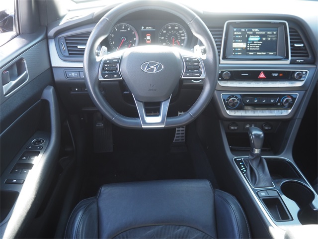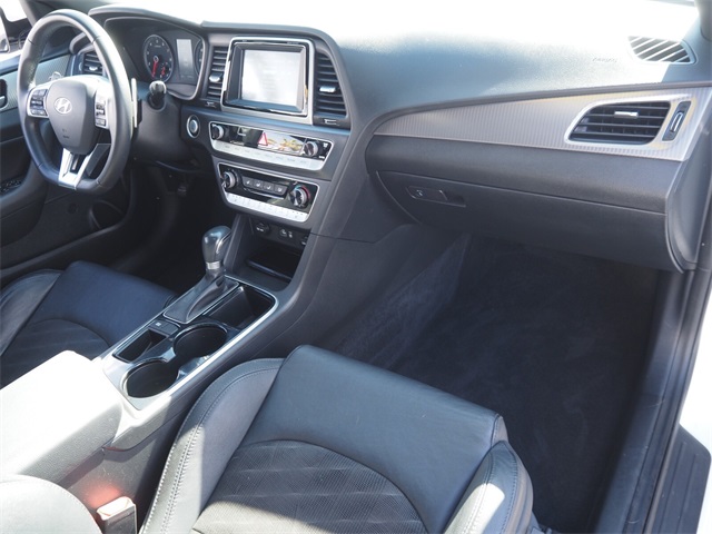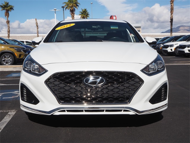 Recent Arrival!CARFAX One-Owner.Odometer is 24114 miles below market average!25/35 City/Highway MPGQuartz White Pearl 2018 Hyundai Sonata Sport FWD 6-Speed Automatic with Shiftronic 2.4L I4 DGI DOHC 16V ULEV II 185hp Black Leather.If you don't drive here, you can't save here!Awards: * 2018 KBB.com Best Family Sedans * 2018 KBB.com 5-Year Cost to Own Awards * 2018 KBB.com 10 Best Sedans Under $25,000 * 2018 KBB.com 10 Most Awarded BrandsPrice may not include recon fee. Cargo Package (Cargo Net, Reversible Cargo Tray, and Trunk Hook), Black Leather, 4-Wheel Disc Brakes, 6 Speakers, ABS brakes, Air Conditioning, Alloy wheels, AM/FM radio: SiriusXM, Apple CarPlay & Android Auto, Brake assist, Bumpers: body-color, Carpeted Floor Mats, Delay-off headlights, Driver door bin, Driver vanity mirror, Dual front impact airbags, Dual front side impact airbags, Electronic Stability Control, Emergency communication system: Blue Link, Exterior Parking Camera Rear, First Aid Kit, Four wheel independent suspension, Front anti-roll bar, Front Bucket Seats, Front Center Armrest, Front reading lights, Fully automatic headlights, Heated door mirrors, Heated front seats, Heated Front Sport Seats, Illuminated entry, Knee airbag, Leather Bolster/Cloth Insert Seating Surfaces, Leather Shift Knob, Leather steering wheel, Low tire pressure warning, Occupant sensing airbag, Outside temperature display, Overhead airbag, Overhead console, Panic alarm, Passenger door bin, Passenger vanity mirror, Power door mirrors, Power driver seat, Power moonroof, Power steering, Power windows, Radio data system, Radio: AM/FM/HD/SiriusXM/MP3 Display Audio, Rear anti-roll bar, Rear seat center armrest, Rear window defroster, Remote keyless entry, Security system, Speed control, Speed-sensing steering, Speed-Sensitive Wipers, Split folding rear seat, Sport steering wheel, Steering wheel mounted audio controls, Tachometer, Telescoping steering wheel, Tilt steering wheel, Traction control, Trip computer, Turn signal indicator mirrors, Variably intermittent wipers, and Wheels: 17 x 7.0J Aluminum Alloy.