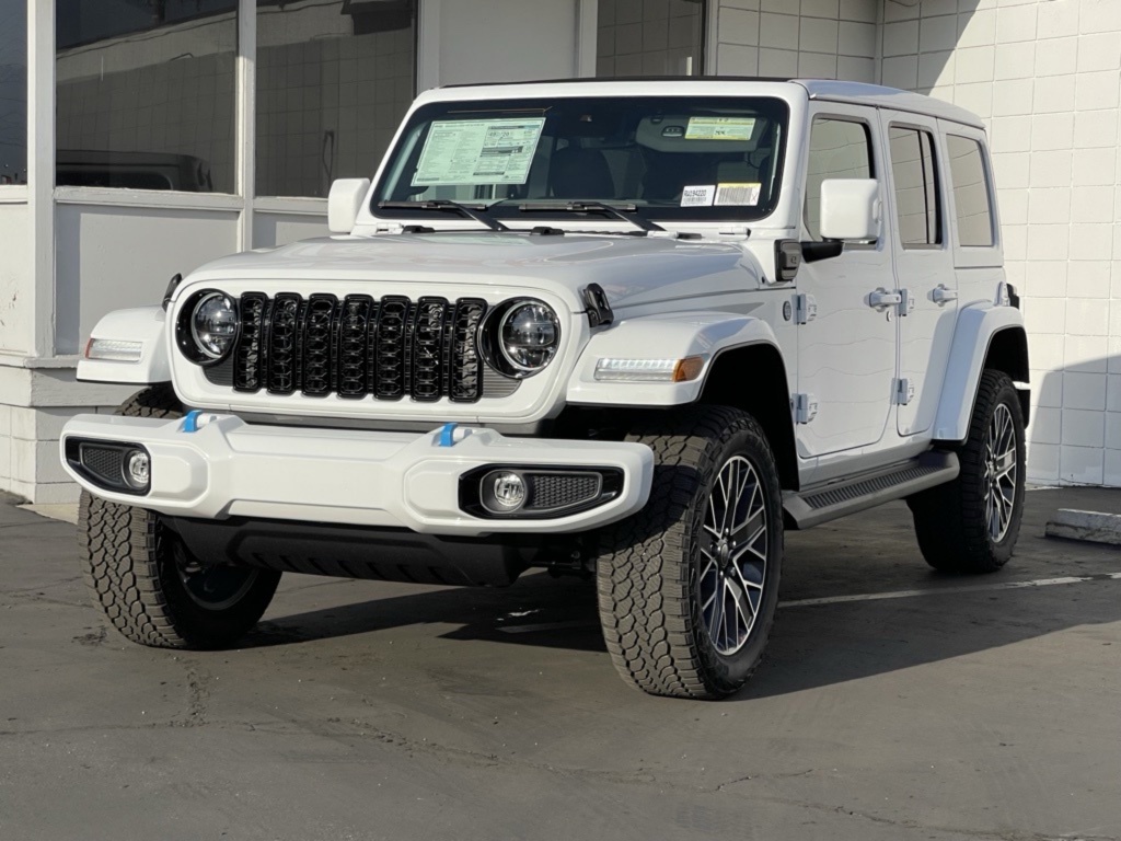 ** Additional Savings may be available to certain groups or individuals. Please contact us to see if you qualify. *Net Cost includes a Factory Rebate, if applicable, on this vehicle and is valid on a cash or financed purchase only by an individual for their personal use. The sale price or net cost does not apply to a lease. *All Pricing and Advertised Prices for any/all vehicles offered for sale does not include dealer installed accessories. *The Factory Rebates may not be available on this vehicle if you elect to take advantage of a Special Alternative APR or Special Lease program. Some Factory Rebates are California Resident specific and may vary for residents of other states. We Only Provide 4 Gallons of Gas at Purchase. *No sales to Dealers, Brokers or Exporters. No out of state purchase, customers must be present to purchase. Please contact us for special Multi-Vehicle or Fleet pricing. Prices are plus government fees and taxes, any finance charges, $85 documentary fee, $33 electronic registration fee, any emission testing charge and $1.75 per new tire state tire fee. All vehicles are subject to prior sale. *While every reasonable effort is made to ensure the accuracy of this information, we are not responsible for any errors or omissions contained on these pages. Leasing & financing available on approved credit. Trade-ins accepted. The estimated selling price that appears after calculating dealer offers is for informational purposes, only. You may not qualify for the offers, incentives, discounts, or financing. Offers, incentives, discounts, or financing are subject to expiration and other restrictions. See dealer for qualifications and complete details. *Images, prices, and options shown, including vehicle color, trim, options, pricing and other specifications are subject to availability, incentive offerings, current pricing and credit worthiness.** PASSED FULL MULTI POINT INSPECTION, ** SERVICE COMPLETED: OIL CHANGE, NEW OIL FILTER, NEW CABIN FILTER & NEW ENGINE AIR FILTER, ** FULL DETAIL INCLUDED: EXTERIOR PAINT PROTECTION, INTERIOR PROTECTION, AND WHEEL + TIRE SHINE, ** SMOG CERTIFICATION PASSED, ** BACKUP CAMERA, ** BLUETOOTH, ** APPLE CAR PLAY/ ANDROID AUTO, 2.0L I4 DOHC.Bright White Clearcoat2024 Jeep Wrangler High Altitude 4xe 4WD 8-Speed Automatic 2.0L I4 DOHC**********All Pricing and Advertised Prices for any/all vehicles offered for sale does not include dealer installed accessories which can be purchased for an additional cost.********** The Factory Rebates may not be available on this vehicle if you elect to take advantage of a Special Alternative APR or Special Lease program. Some Factory Rebates are California Resident specific and may vary for residents of other states. NO sales to Dealers, Brokers or Exporters. For out of state purchase, customers must be present to purchase. If shipping is required, dealership must facilitate; no exceptions. Please contact us for special Multi-Vehicle or Fleet pricing. Prices are plus government fees and taxes, any finance charges, $85 documentary fee, $29 electronic registration fee, any emission testing charge and $1.75 per new tire state tire fee. *** We make every effort to provide accurate information, but please verify before purchasing. Leasing & financing available on approved credit. Trade-ins accepted. Subject to prior sale.