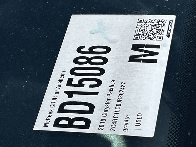 19/28 City/Highway MPG CARFAX One-Owner. INTERIOR & EXTERIOR PROFESSIONALLY DETAILED FOR DELIVERY, MCPEEK CHRYSLER DODGE JEEP RAM FAMILY OWNED AND OPERATED SINCE 1961 !!!!!.Granite Crystal Metallic Clearcoat 2018 Chrysler Pacifica Touring L Plus FWD 9-Speed AutomaticAwards: * JD Power Automotive Performance, Execution and Layout (APEAL) Study * 2018 KBB.com Best Family Cars * 2018 KBB.com 10 Most Affordable 3-Row VehiclesReceive Free lube and oil filter changes for up to 45,000 miles for 3 years!!! McPeek's Dodge of Anahiem 1221 S. Auto Center Drive Anahiem, CA 92806 714-262-4902.