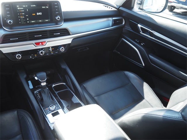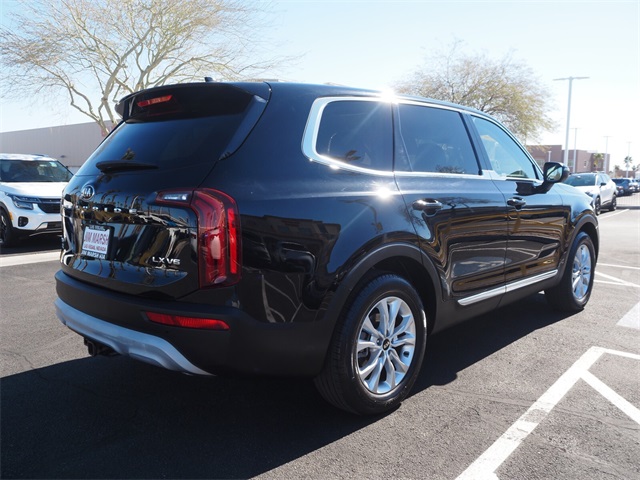 CARFAX One-Owner.Odometer is 19091 miles below market average!Ebony Black 2020 Kia Telluride LX AWD 8-Speed Automatic 3.8L V6 DGI DOHC Dual CVVTIf you don't drive here, you can't save here!Awards: * Motor Trend Automobiles of the year * JD Power Automotive Performance, Execution and Layout (APEAL) Study * NACTOY 2020 North American Utility of the Year * 2020 KBB.com 10 Best SUVs Worth Waiting For * 2020 KBB.com Best Buy Awards * 2020 KBB.com 10 Favorite New-for-2020 CarsPrice may not include recon fee. Kia Certified Pre-Owned Certified, 3.648 Axle Ratio, 3rd row seats: split-bench, 4-Wheel Disc Brakes, 6 Speakers, ABS brakes, Air Conditioning, Alloy wheels, AM/FM radio: SiriusXM, Apple CarPlay & Android Auto, Brake assist, Bumpers: body-color, Cargo Cover, Carpeted Floor Mats, Delay-off headlights, Driver door bin, Driver vanity mirror, Dual front impact airbags, Dual front side impact airbags, Electronic Stability Control, Emergency communication system: 911 Connect, Four wheel independent suspension, Front anti-roll bar, Front Bucket Seats, Front Center Armrest, Front reading lights, Fully automatic headlights, Heated door mirrors, Illuminated entry, Knee airbag, Leather steering wheel, Low tire pressure warning, Occupant sensing airbag, Outside temperature display, Overhead airbag, Overhead console, Panic alarm, Passenger door bin, Passenger vanity mirror, Power door mirrors, Power steering, Power windows, Radio data system, Radio: AM/FM/MP3/SiriusXM Audio System, Rear air conditioning, Rear anti-roll bar, Rear reading lights, Rear seat center armrest, Rear window defroster, Rear window wiper, Reclining 3rd row seat, Remote keyless entry, Security system, SOFINO Artificial Leather Upholstery, Speed control, Speed-sensing steering, Split folding rear seat, Spoiler, Steering wheel mounted audio controls, Tachometer, Telescoping steering wheel, Tilt steering wheel, Tow Hitch w/Harness, Traction control, Trip computer, Turn signal indicator mirrors, Variably intermittent wipers, and Wheels: 7.5" x 18" Painted Alloy.
