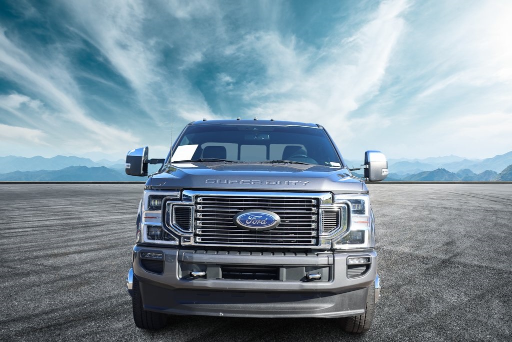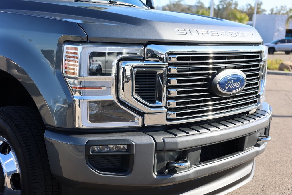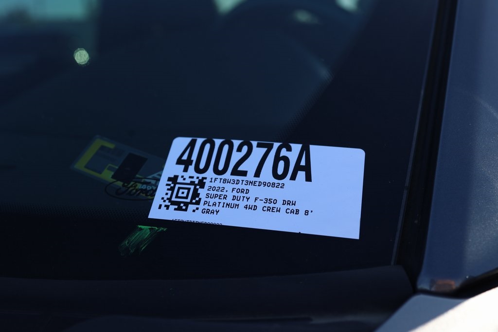 Gray 2022 Ford F-350SD Platinum DRW 4WD 10-Speed Automatic Power Stroke 6.7L V8 DI 32V OHV Turbodiesel 4WD, 17" Forged Polished Aluminum Wheels, 5th Wheel/Gooseneck Hitch Prep Package, AppLink/Apple CarPlay and Android Auto, FX4 Off-Road Package, Gooseneck Hitch Kit (Pre-Installed), GVWR: 14,000 lb Payload Package, Hill Descent Control, Individual Trailer TPMS w/Camera (Pre-Installed), Limited Slip w/4.10 Axle Ratio, Navigation system: SYNC 4 Connected Navigation, Off-Road Specifically Tuned Shock Absorbers, Order Code 723A, Radio: B&O Sound System by Bang & Olufsen, SiriusXM Radio w/360L, SYNC 4 w/Enhanced Voice Recognition, Tough Bed Spray-In Bedliner, Twin Panel Power Moonroof, Unique FX4 Off-Road Box Decal, Upfitter Switches (6).Recent Arrival!
