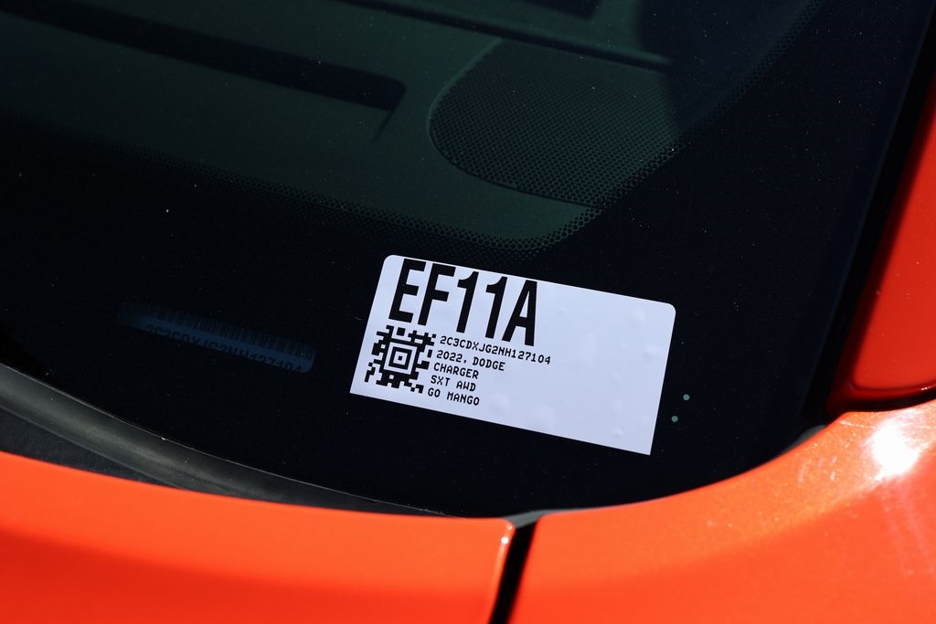 Go Mango 2022 Dodge Charger SXT AWD 8-Speed Automatic 3.6L V6 24V VVT AWD, Black Houndstooth Cloth Sport Seat, Apple CarPlay/Android Auto, Cold Weather Package, Fully automatic headlights, Heated Front Seats, Heated Steering Wheel, Integrated Voice Command w/Bluetooth, ParkView Rear Back-Up Camera, Power Sunroof, Quick Order Package 29G, Radio: Uconnect 4C w/8.4" Display, Wheels: 19" x 7.5" Satin Carbon.Recent Arrival! 18/27 City/Highway MPG