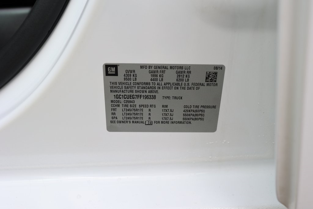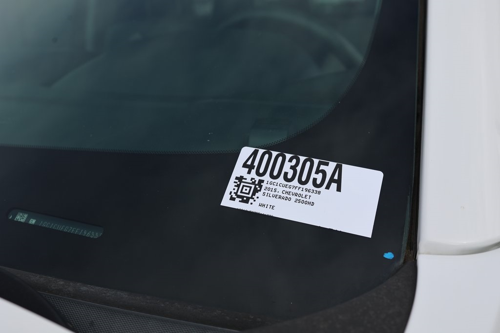 Summit White 2015 Chevrolet Silverado 2500HD Work Truck RWD 6-Speed Automatic HD Electronic with Overdrive 6.0L 8-Cylinder SFI Flex Fuel OHV 6-Speed Automatic HD Electronic with Overdrive, Jet Black/Dark Ash Cloth, 110-Volt AC Power Outlet, Deep-Tinted Glass, Fully automatic headlights, Heavy-Duty Trailering Equipment, Integrated Trailer Brake Controller, Power Windows w/Driver Express Up & Down, Power-Adjustable Heated Outside Mirrors, Preferred Equipment Group 1WT, Rear 60/40 Folding Bench Seat (Folds Up), Remote Keyless Entry, Standard Suspension Package, Steering Wheel, WT Convenience Package.Recent Arrival!